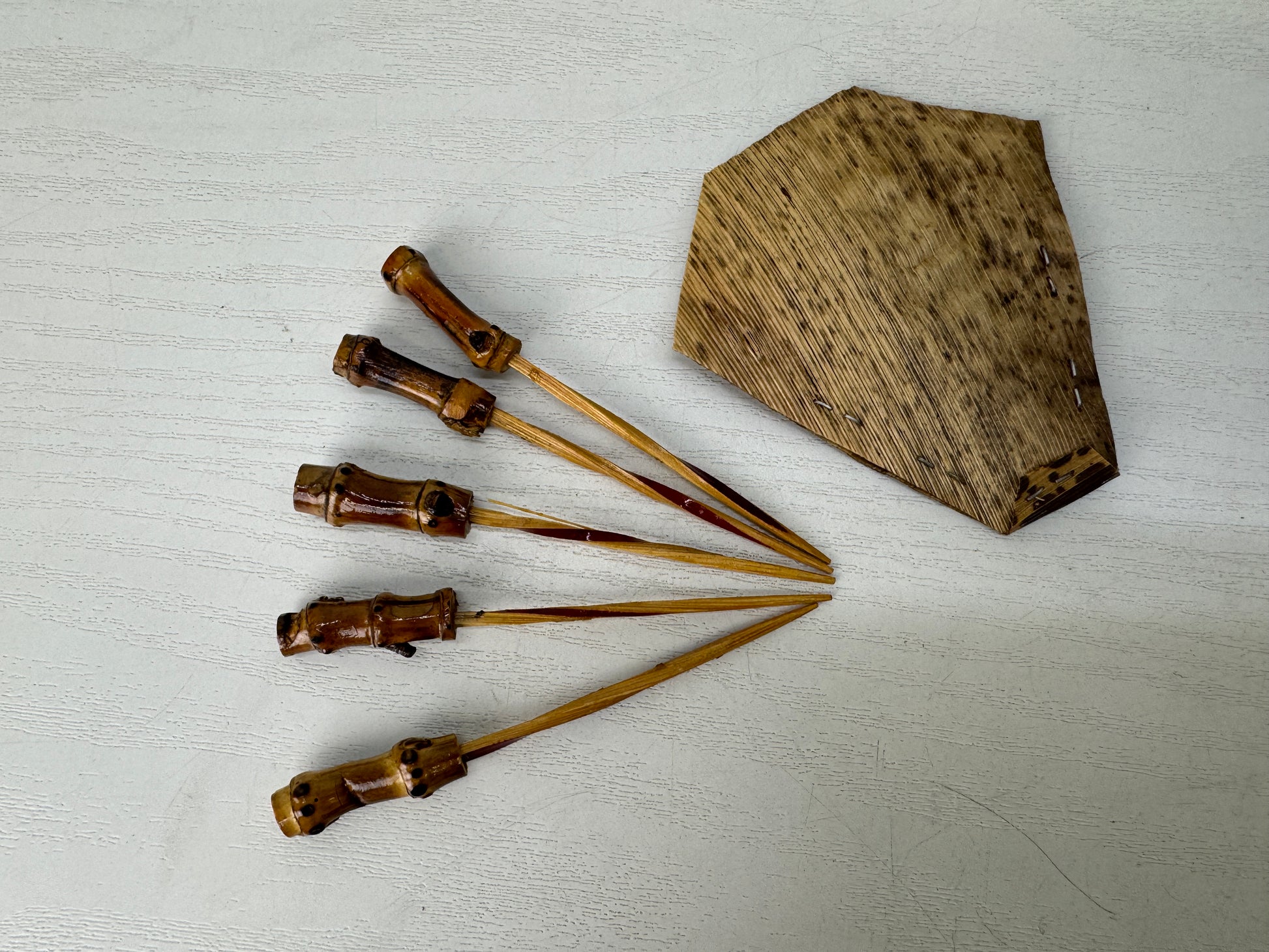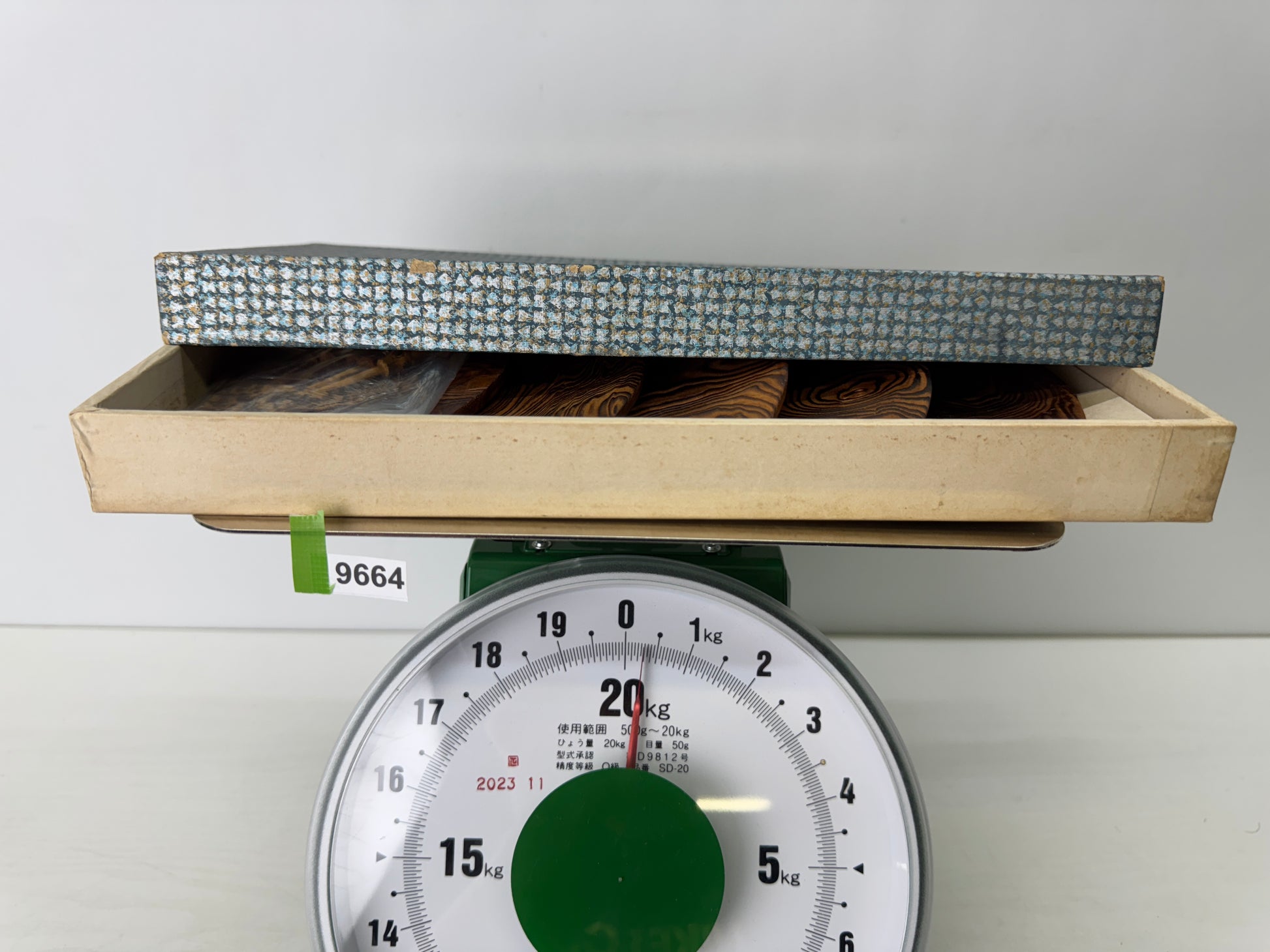 Y9664 DISH Yakusugi cedar Serving plate set of 5 box Japan antique tabelware