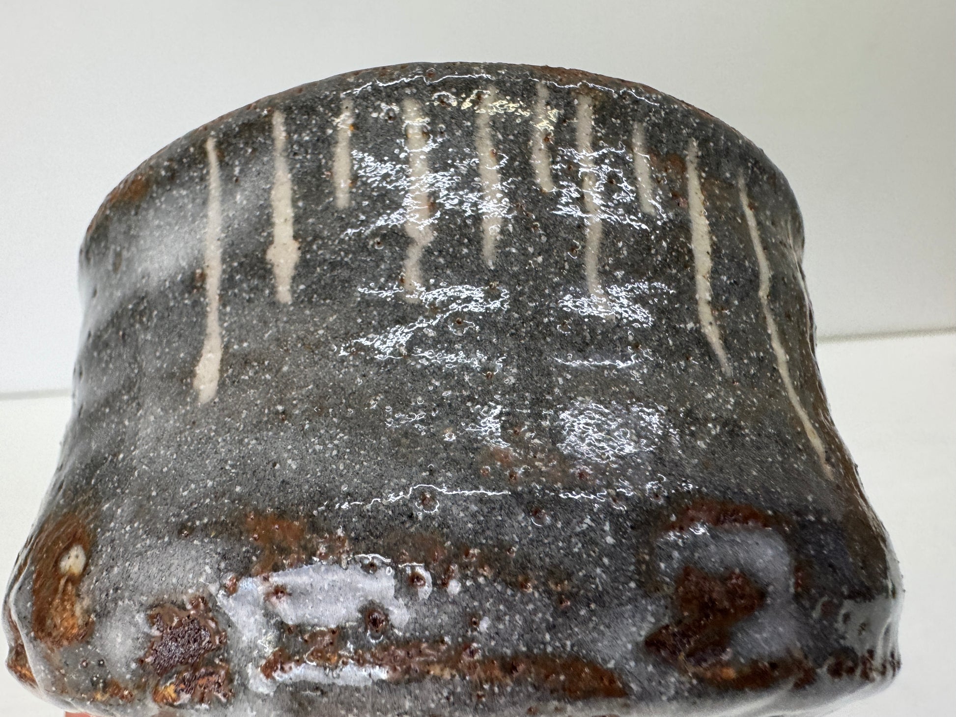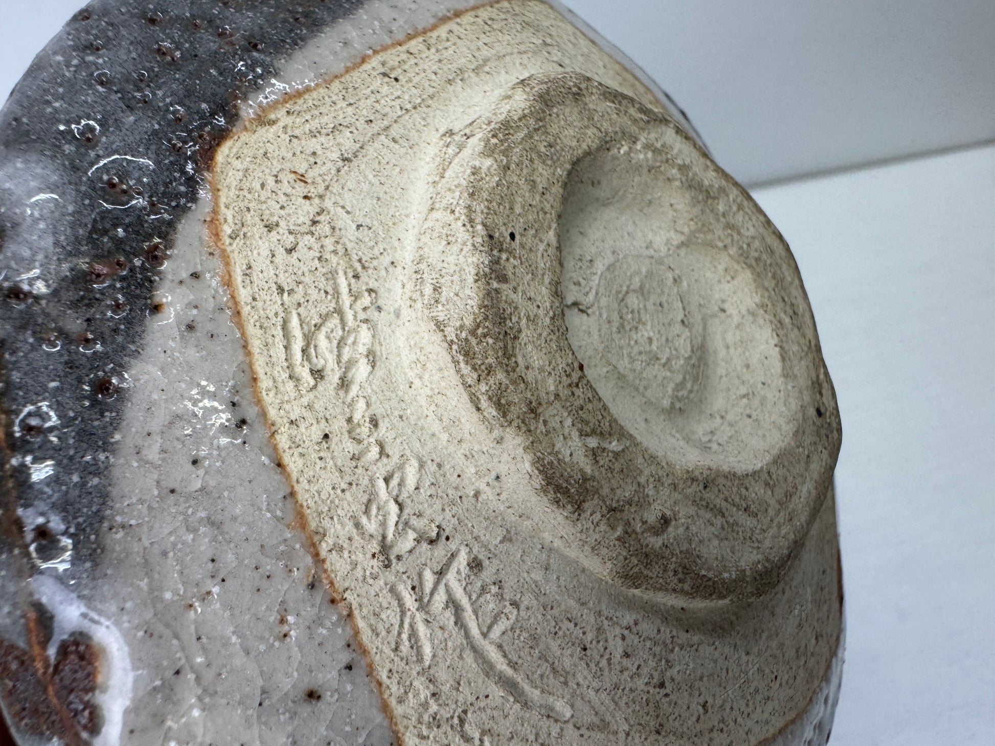 Y9675 CHAWAN Shino-ware bowl signed box Japan antique tea ceremony pottery cup