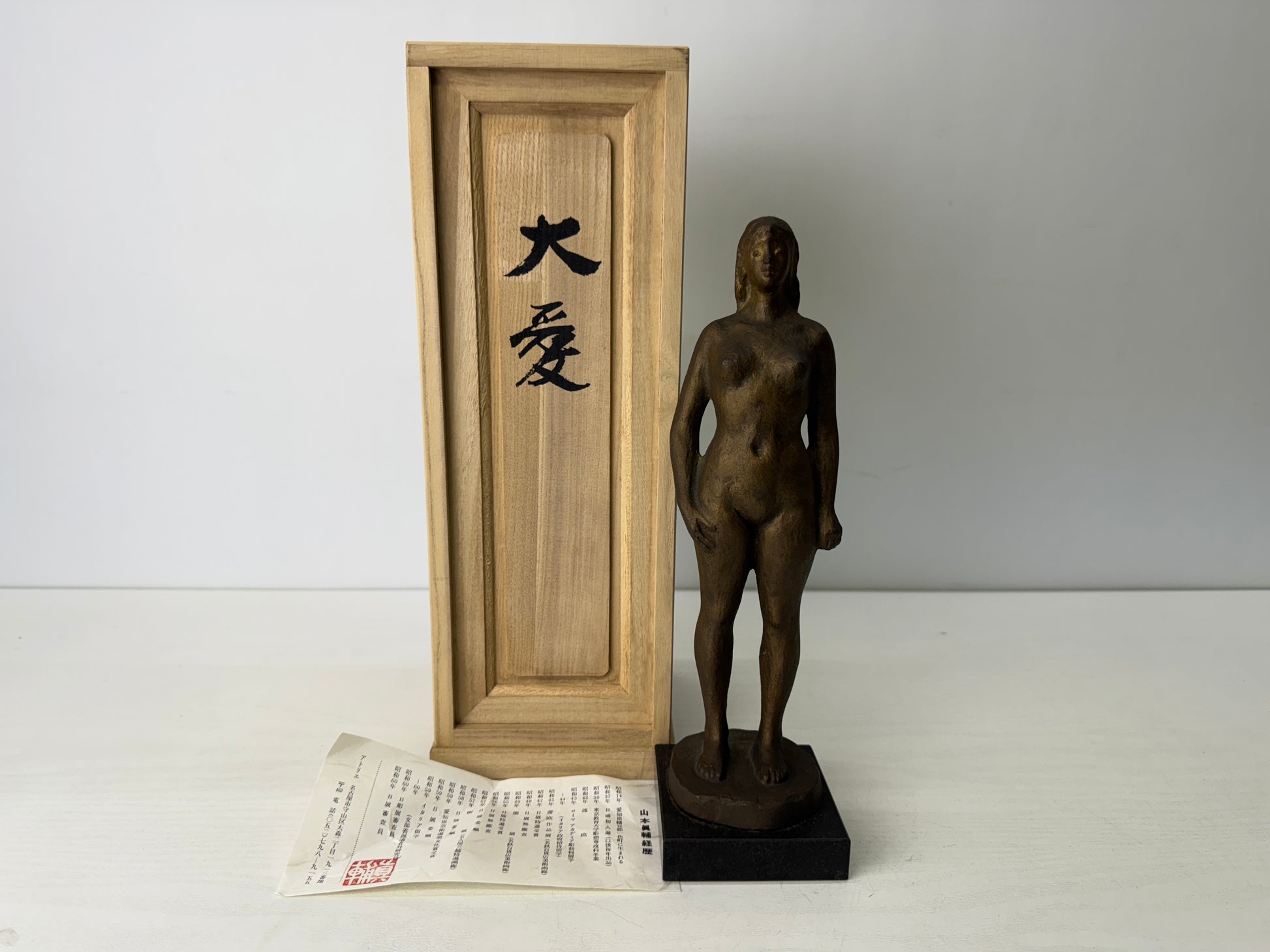 Y9676 STATUE Bronze nude woman figurine signed box Japan antique interior figure