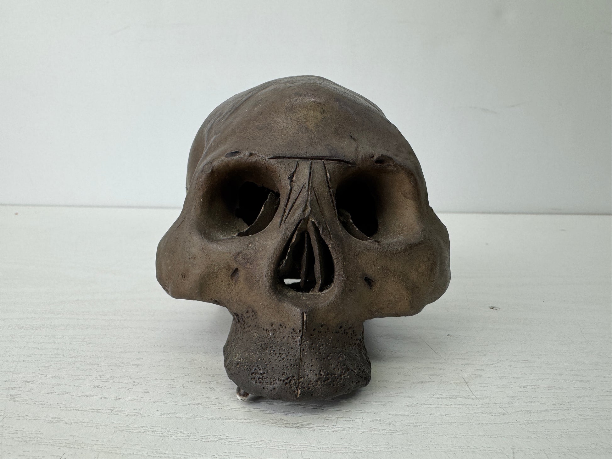 Y9677 OKIMONO Banko-ware Skull ornament figurine figure Japan antique interior