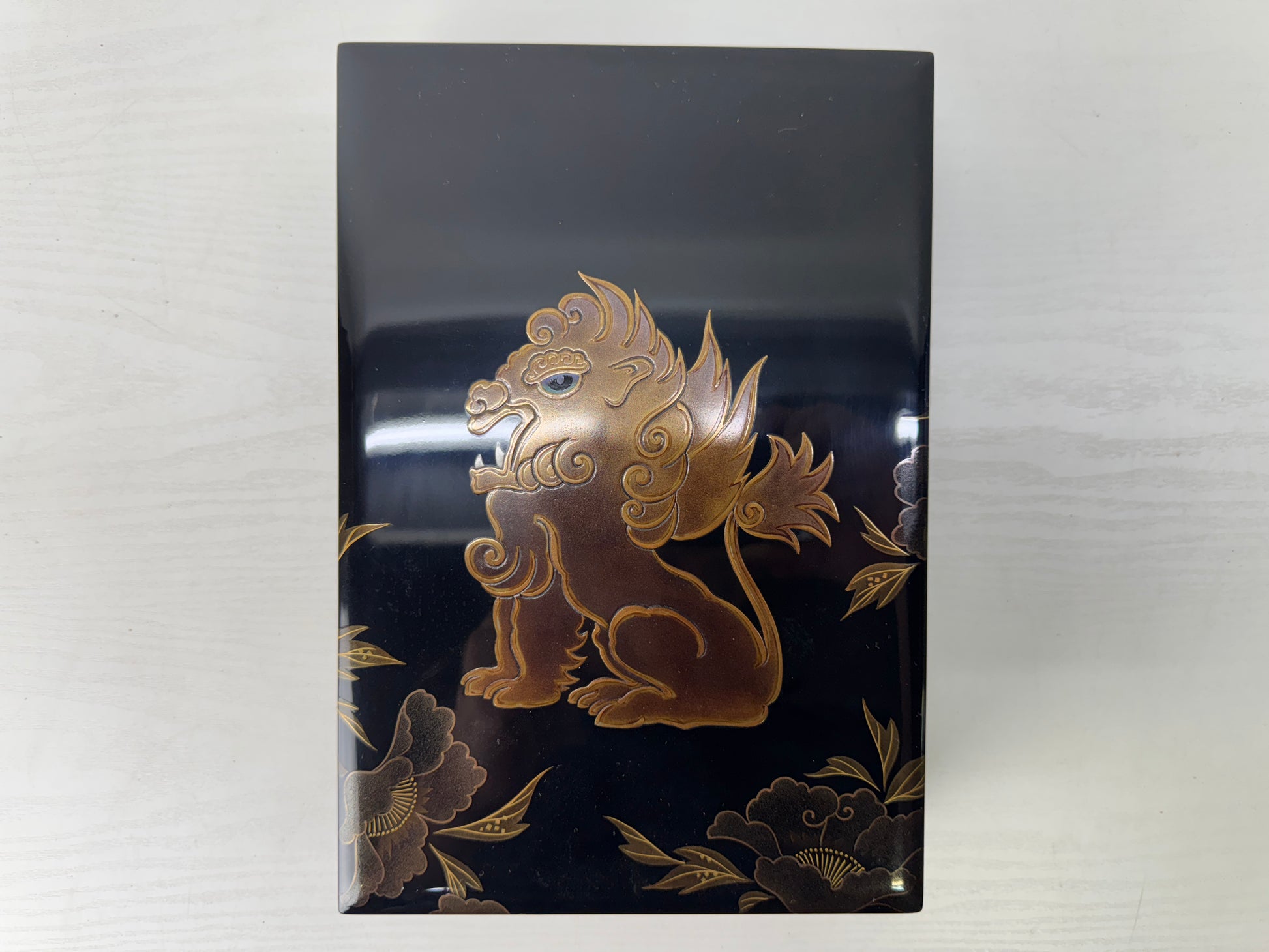 Y9683 BOX Lion Makie Letter case container storage Japan antique stationery