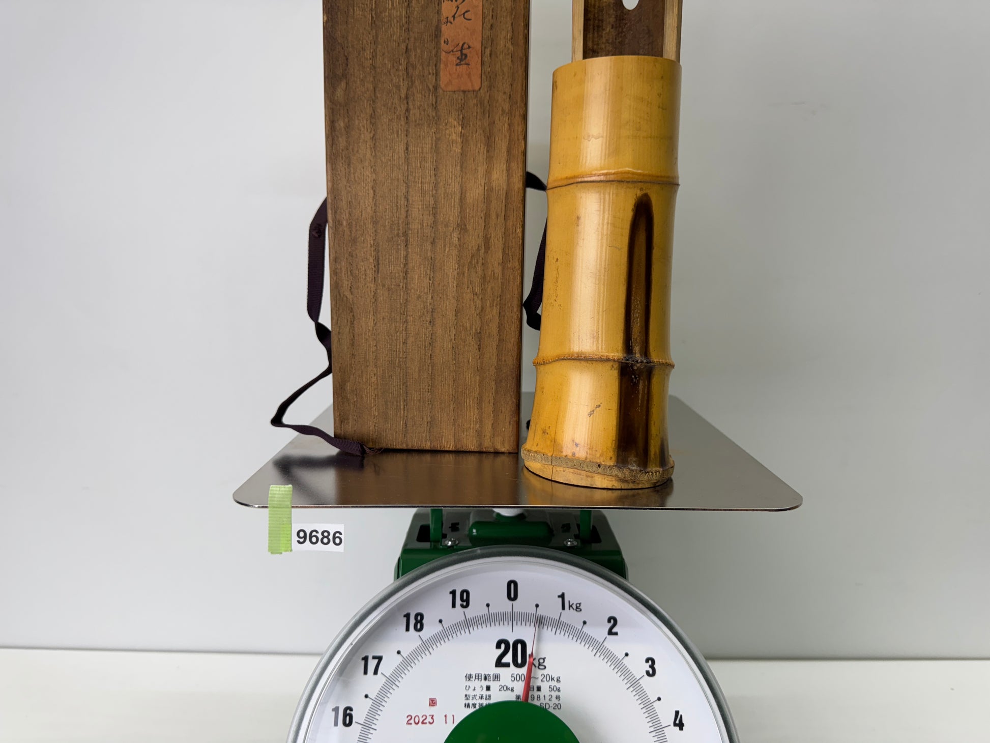 Y9686 FLOWER VASE Bamboo signed box Japan antique ikebana floral arrangement