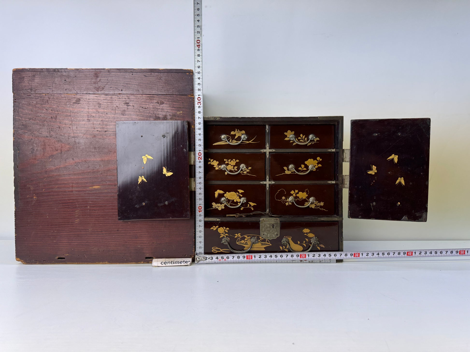 Y9691 TANSU Makie small chest of drawers box lock Meiji period Japan antique