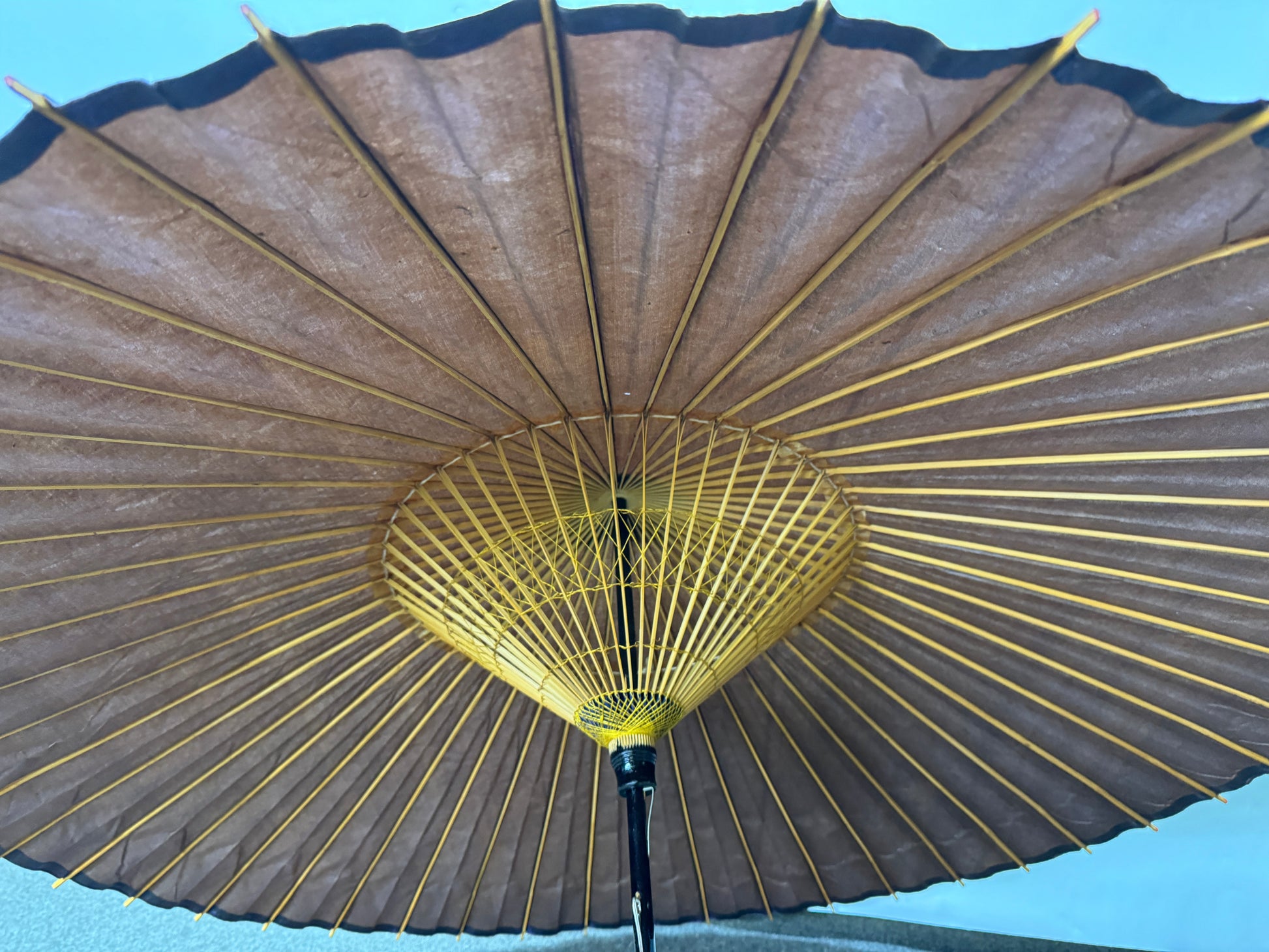 Y9693 WAGASA Bamboo woven Japanese umbrella black paper Japan antique bangasa