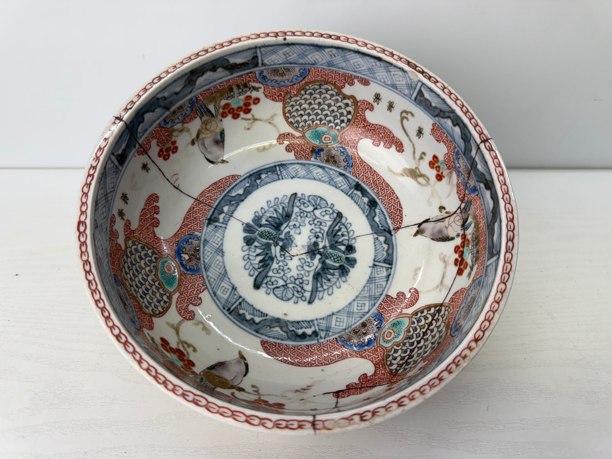 Y9696 CHAWAN Koimari large bowl kintsugi color picture Japan antique tableware