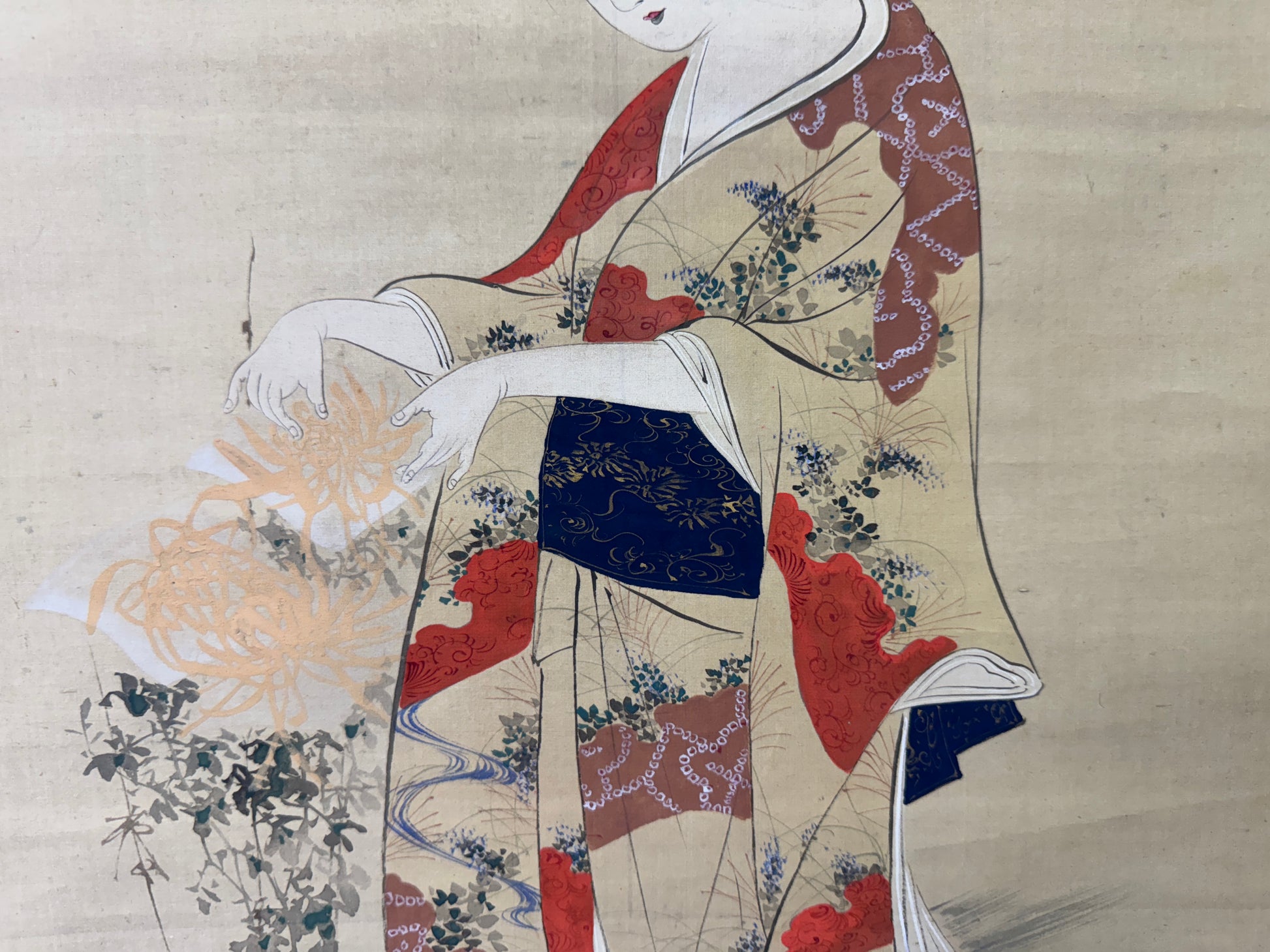 KAKEJIKU Hanging scroll hand-painted Beautiful woman signed