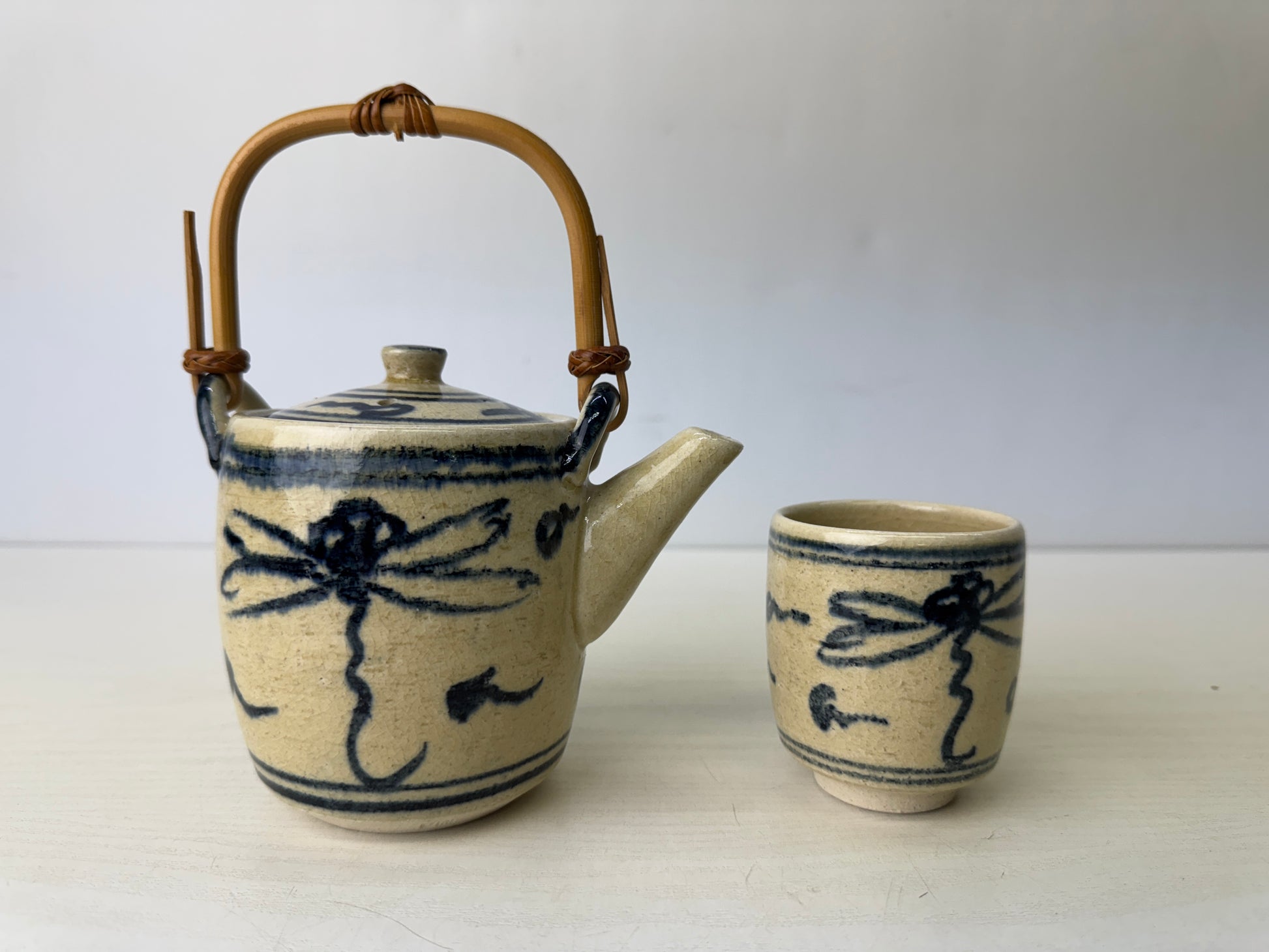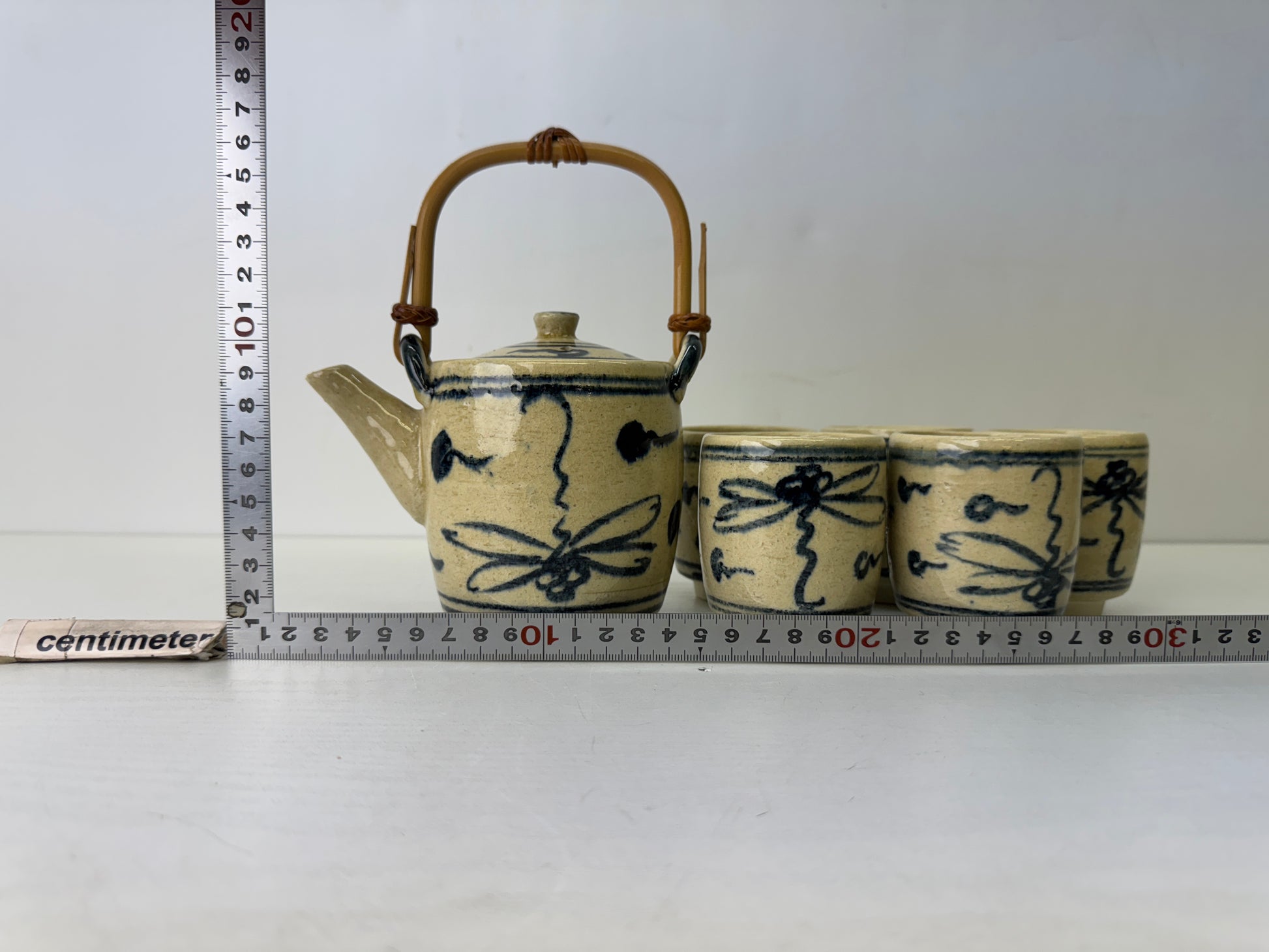KYUSU Kyo-ware dragonfly signed teapot cup set