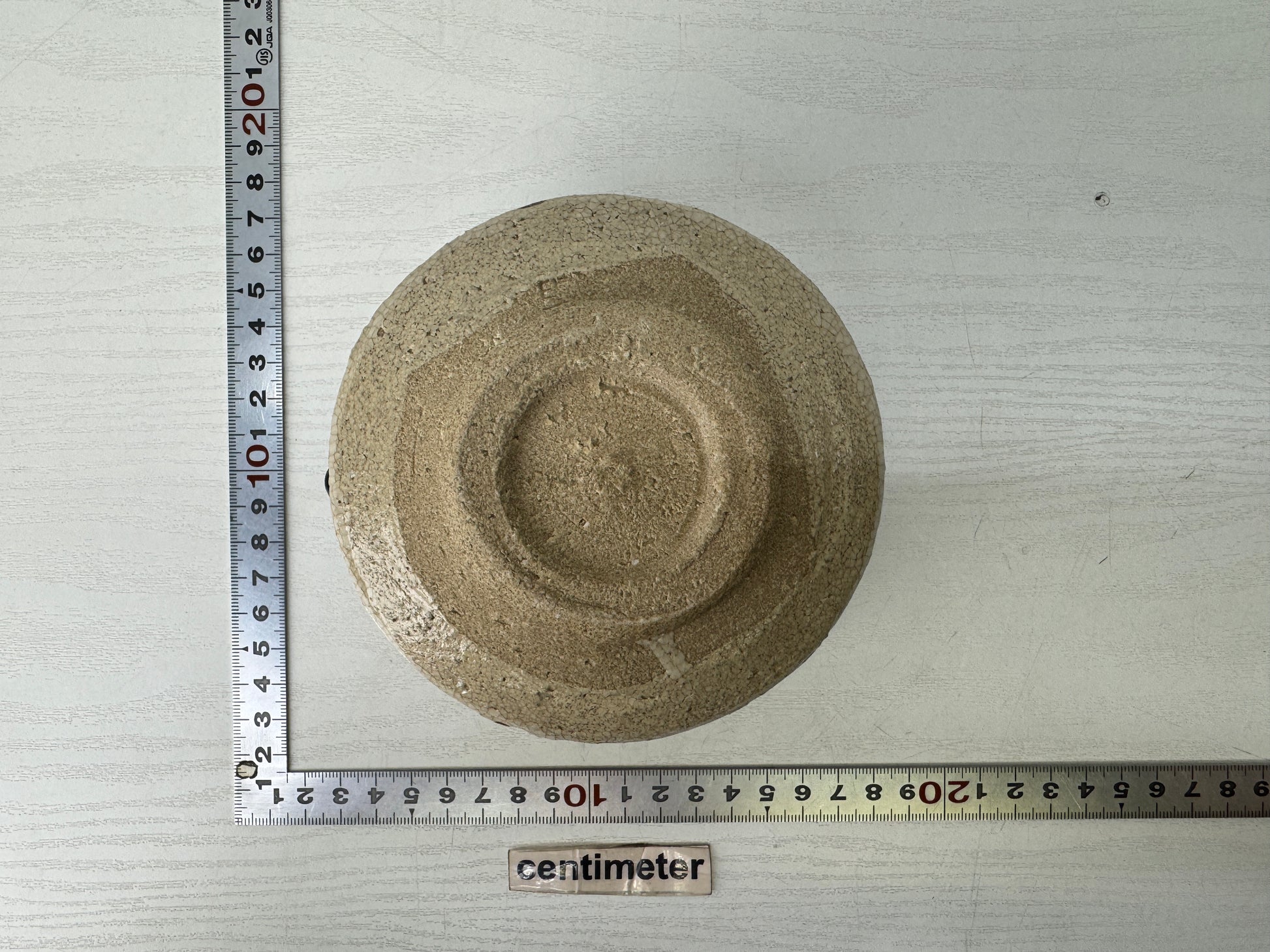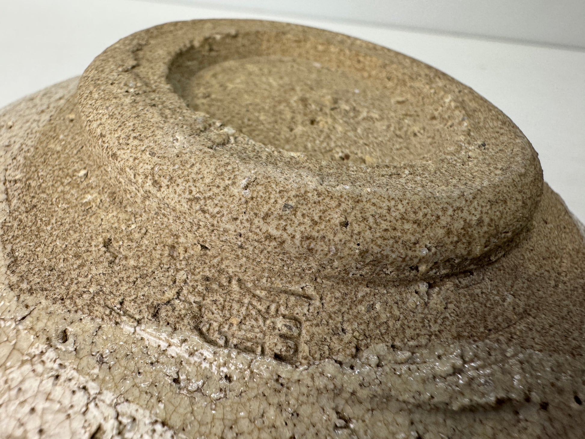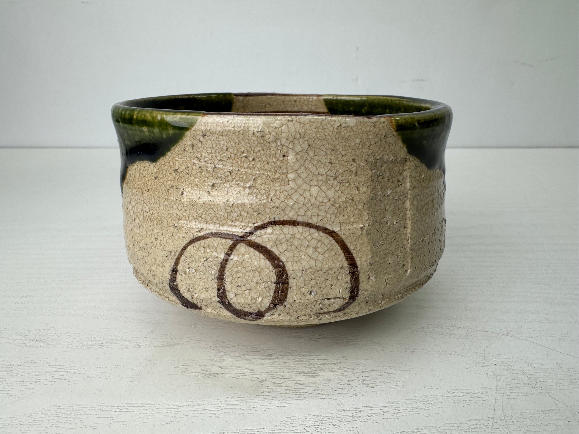 Y9729 CHAWAN Oribe-ware bowl signed Japan antique tea ceremony pottery cup