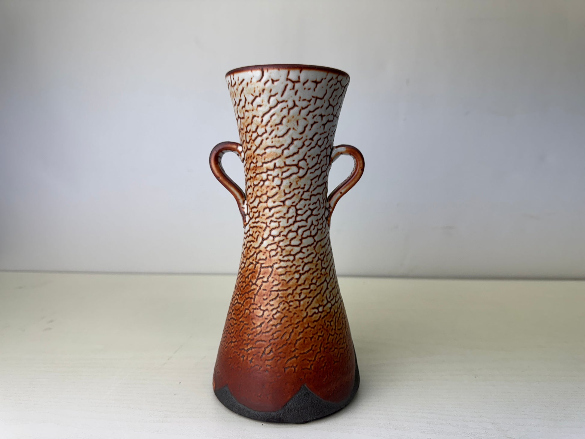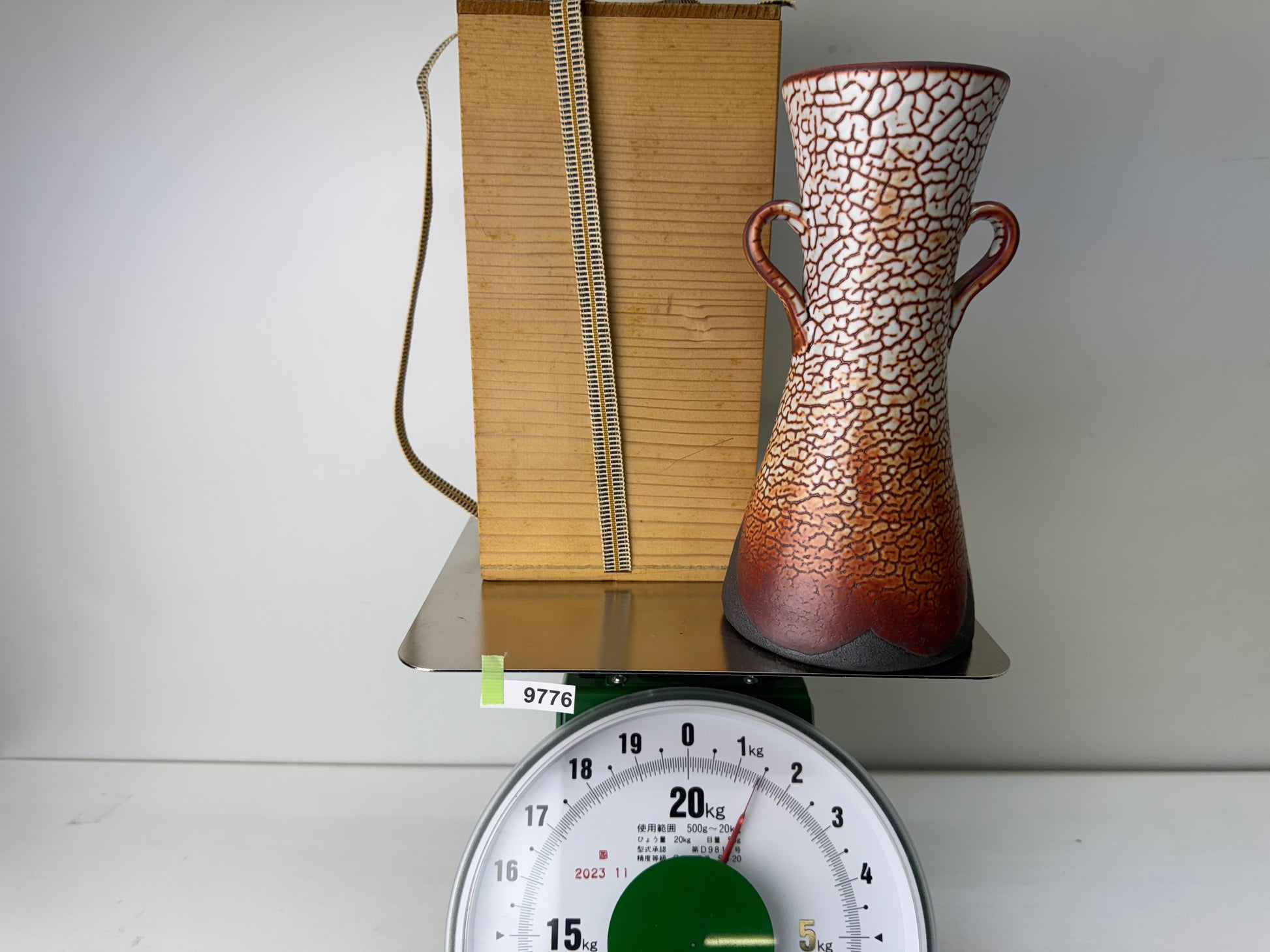 Y9776 FLOWER VASE Shino-ware handle signed box Japan antique ikebana floral