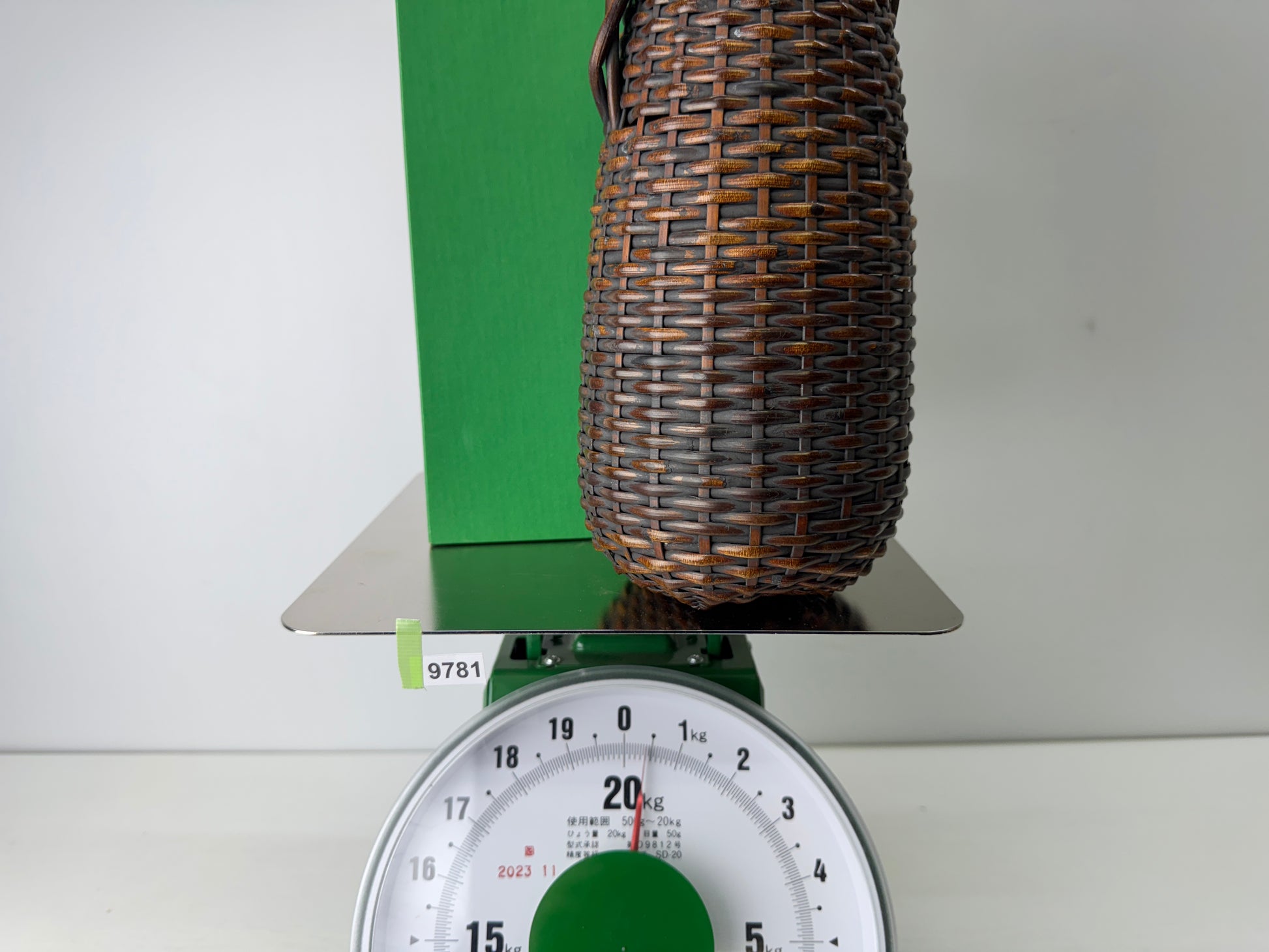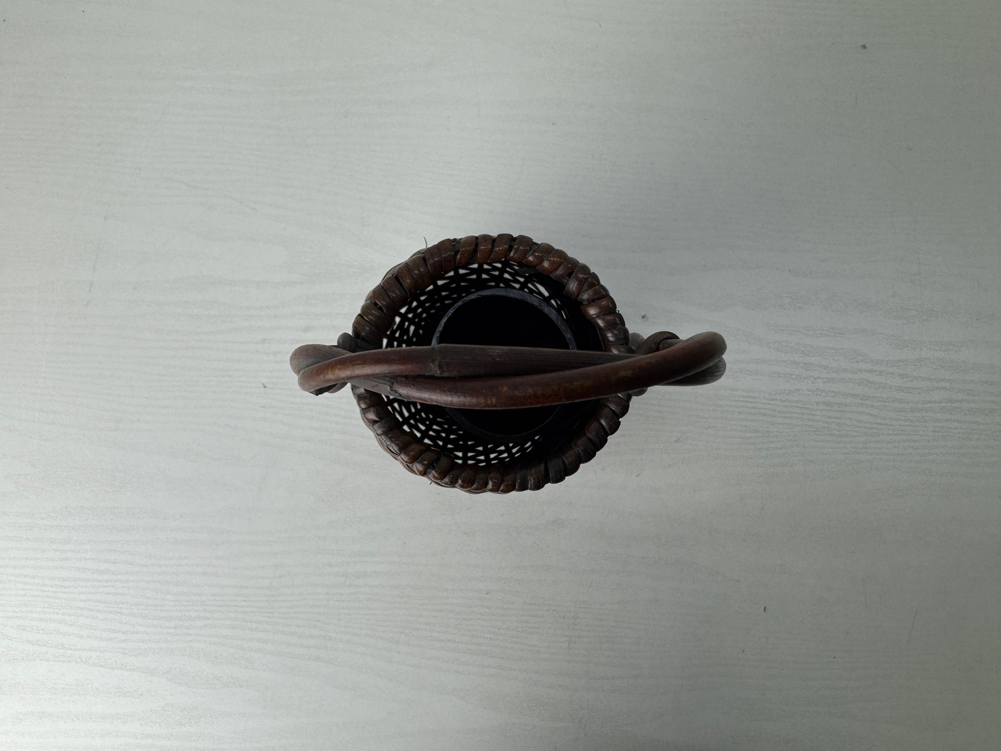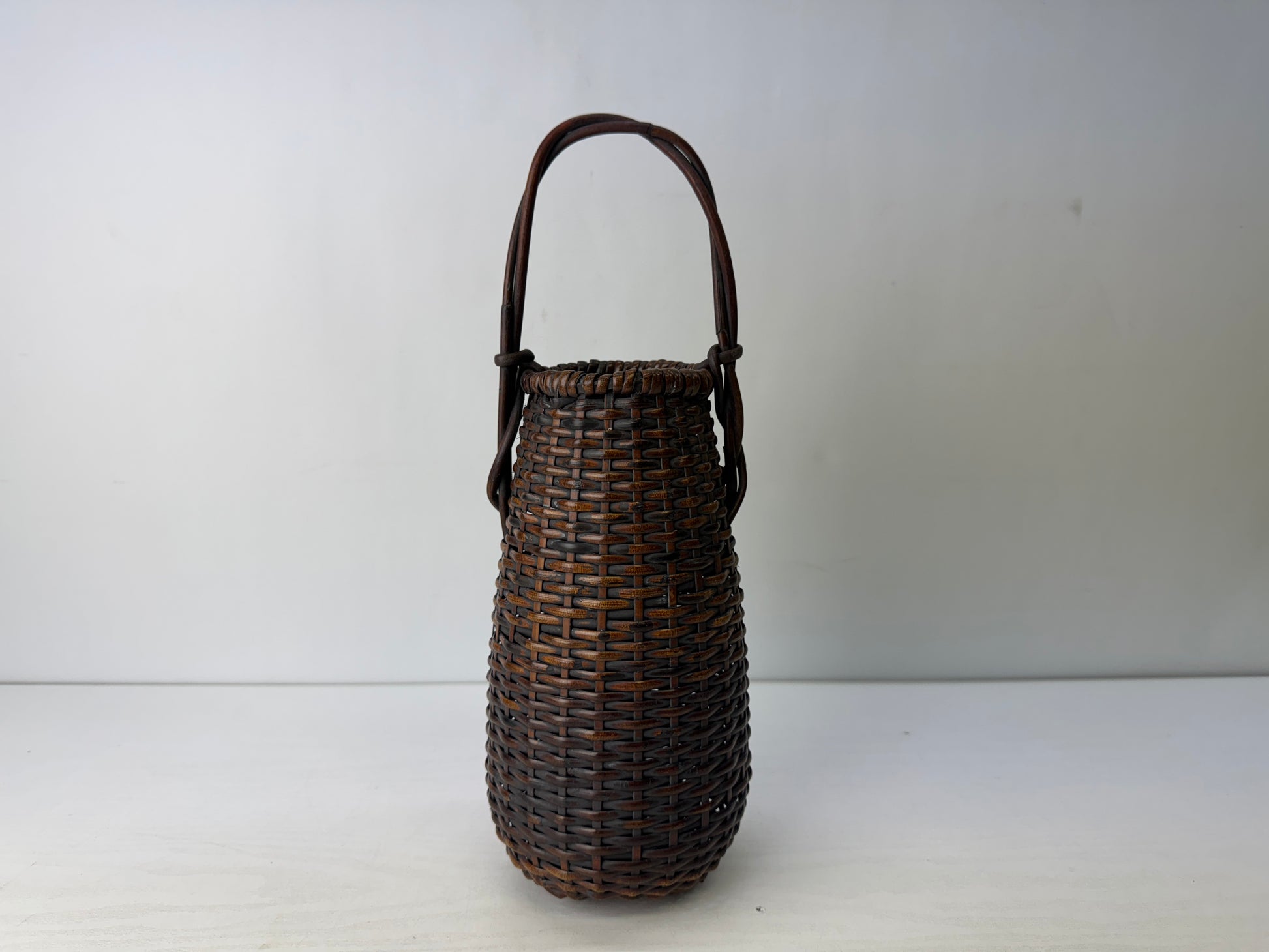 Y9781 Bamboo Woven Basket flower vase box Japan antique ikebana floral decor