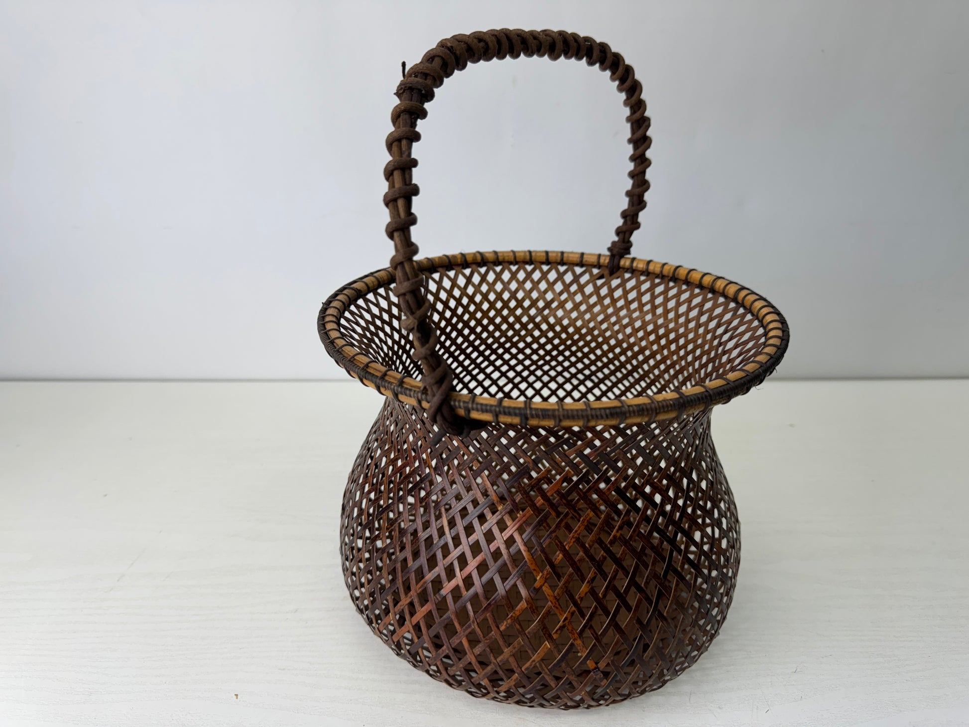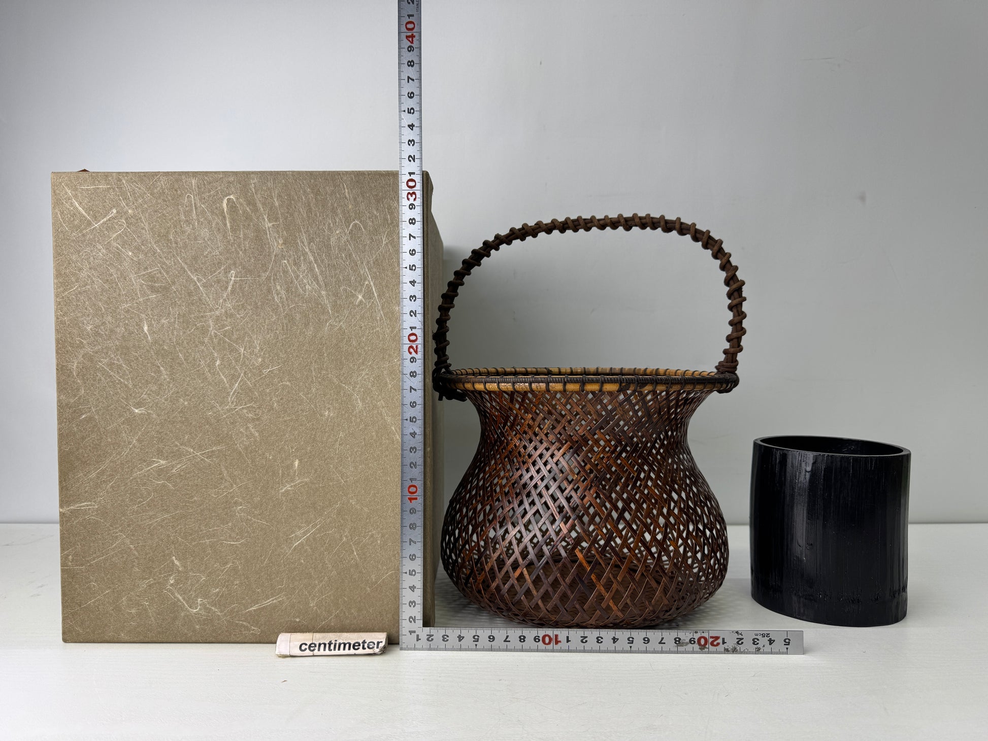 Y9782 Bamboo Woven Basket flower vase box Japan antique ikebana floral decor