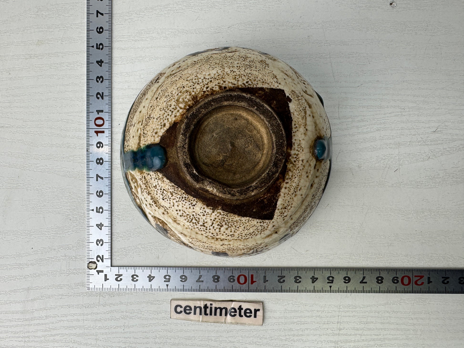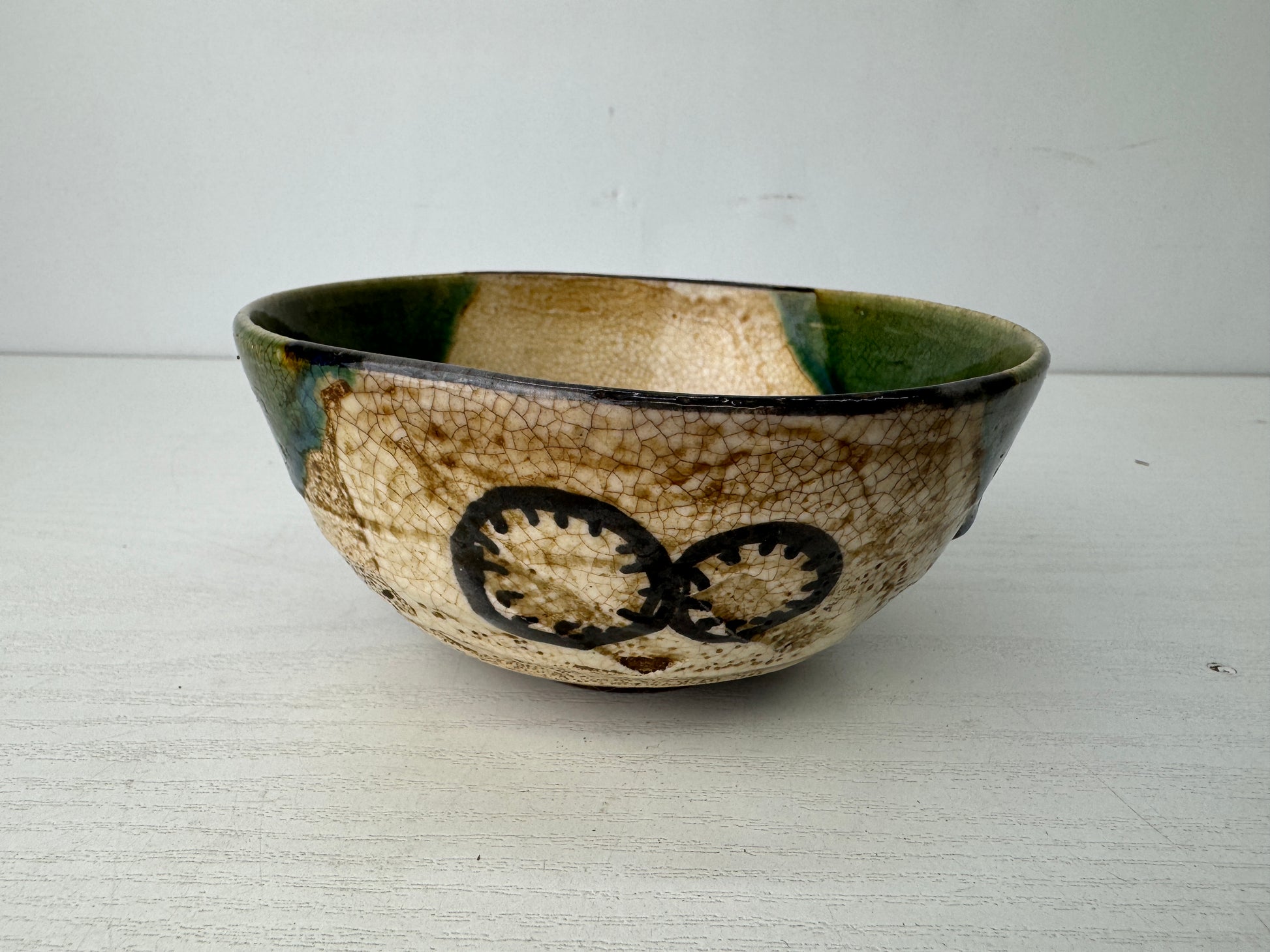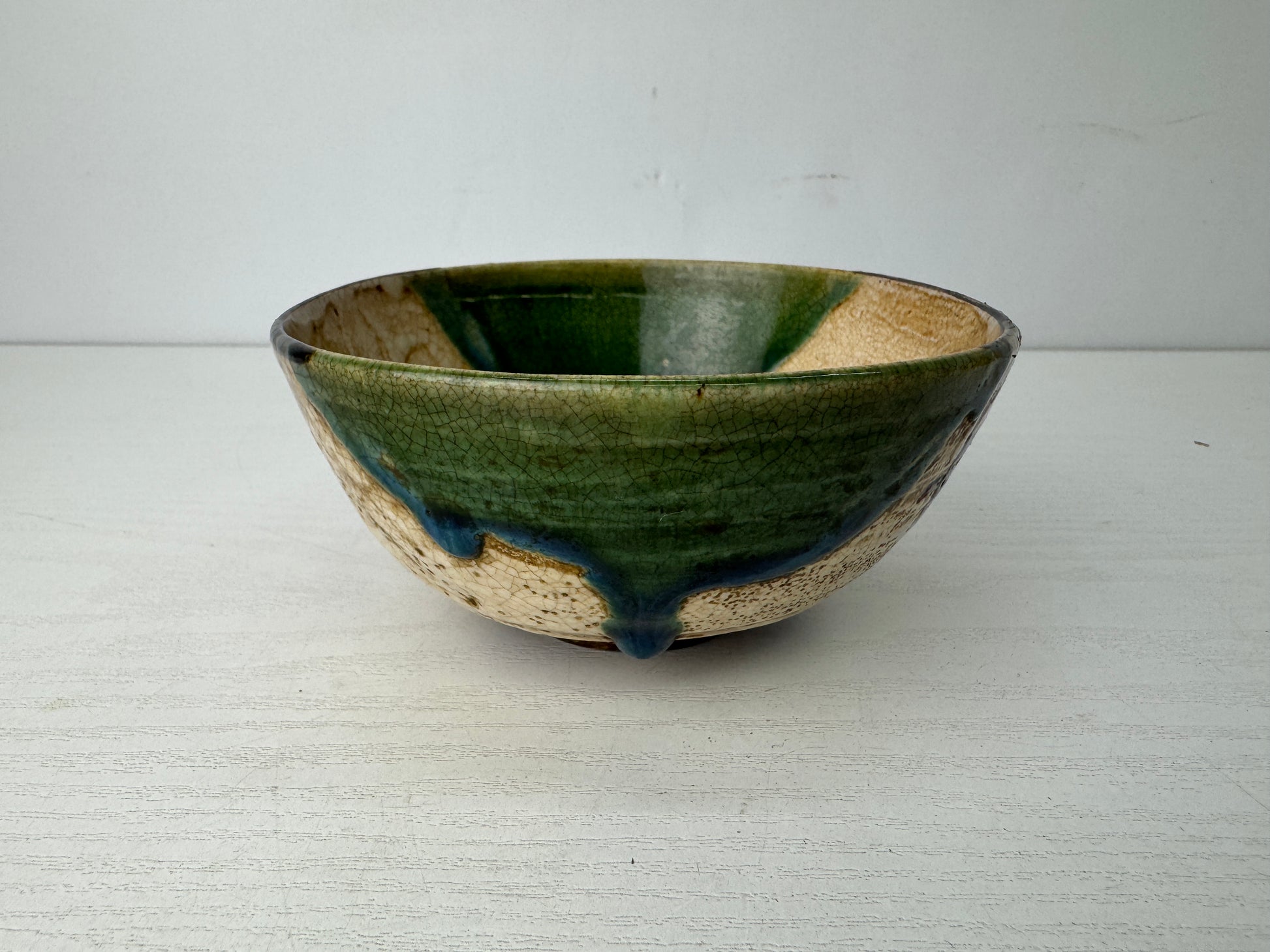 Y9791 CHAWAN Oribe-ware bowl signed Japan antique tea ceremony pottery cup