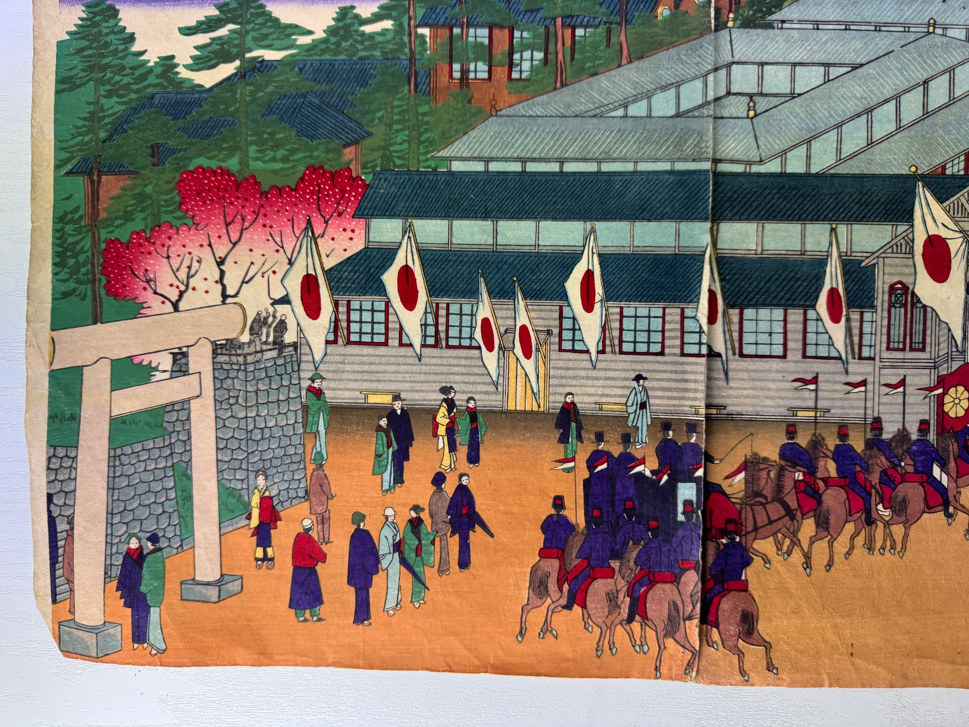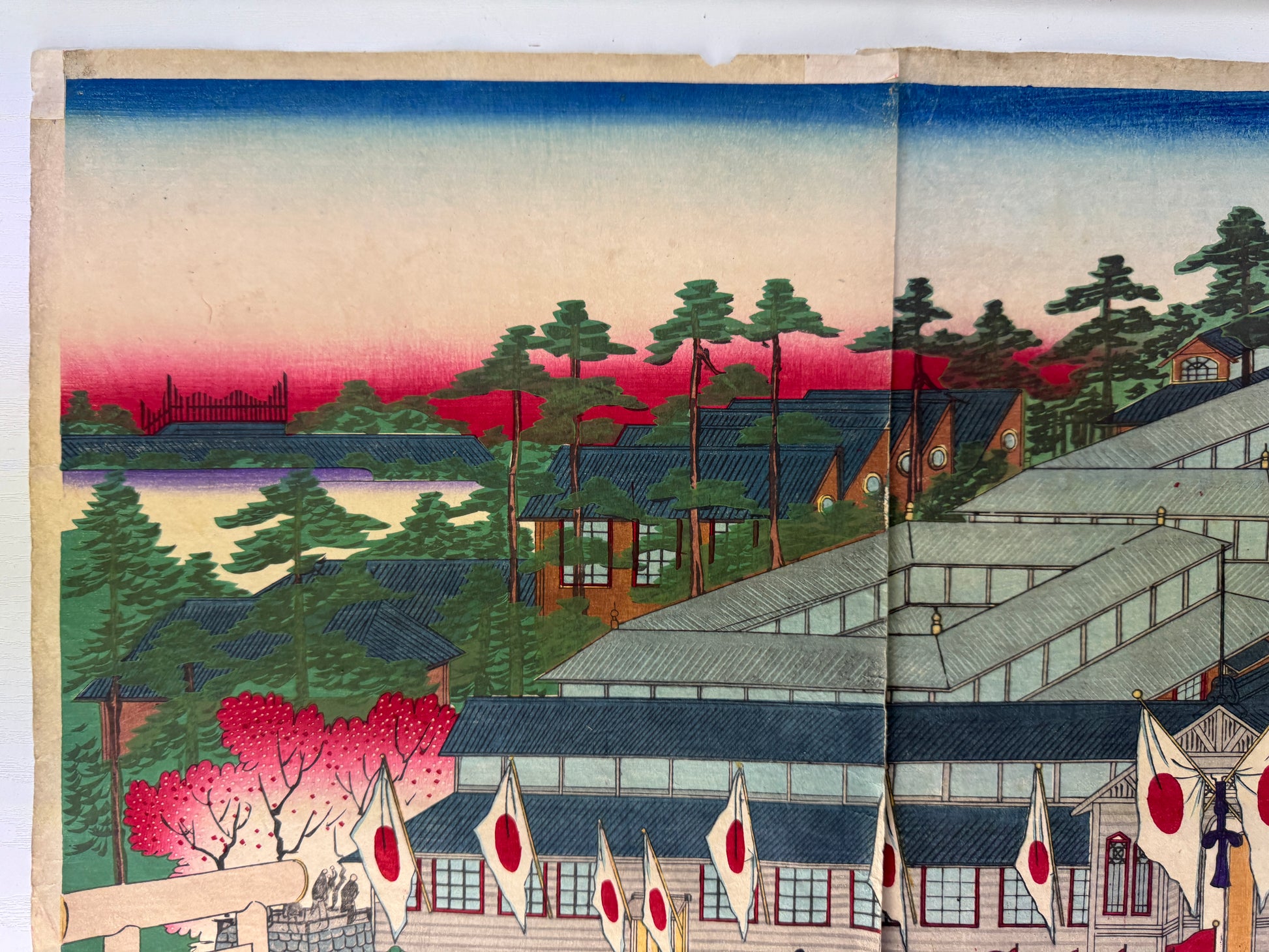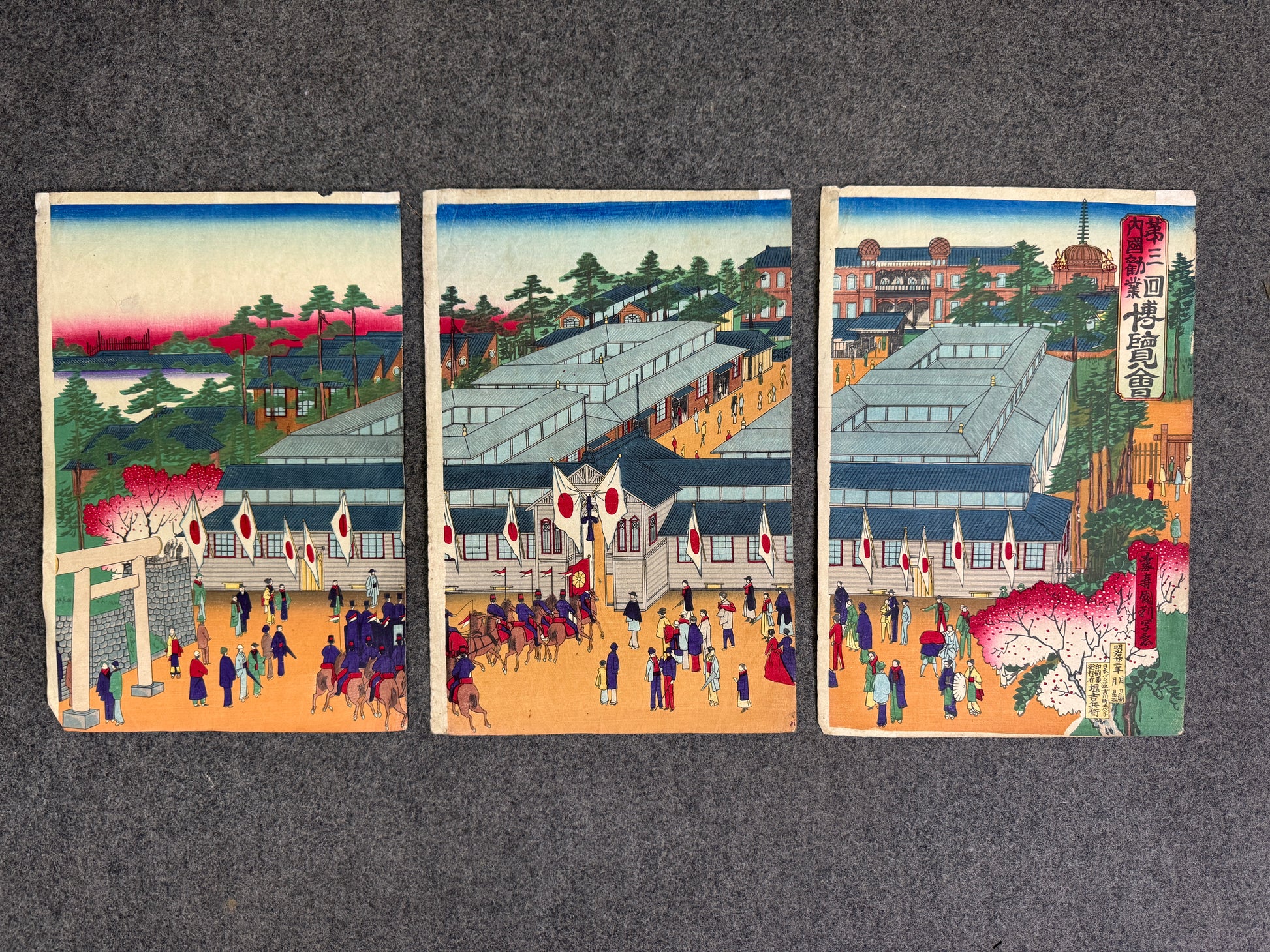 WOODBLOCK PRINT Kunitoshi triptych Meiji Large format