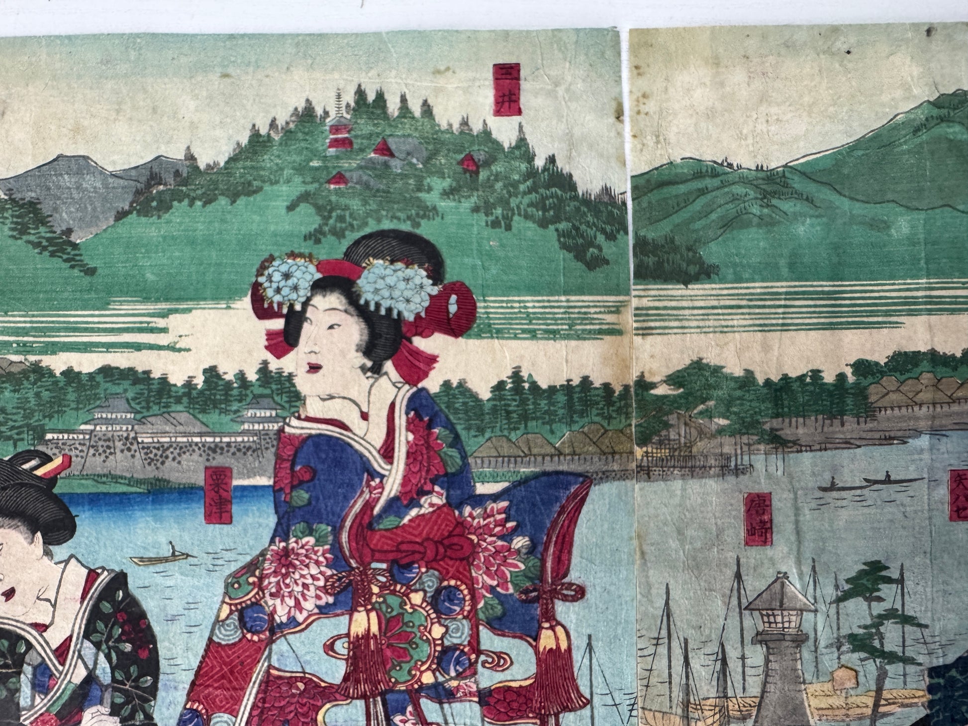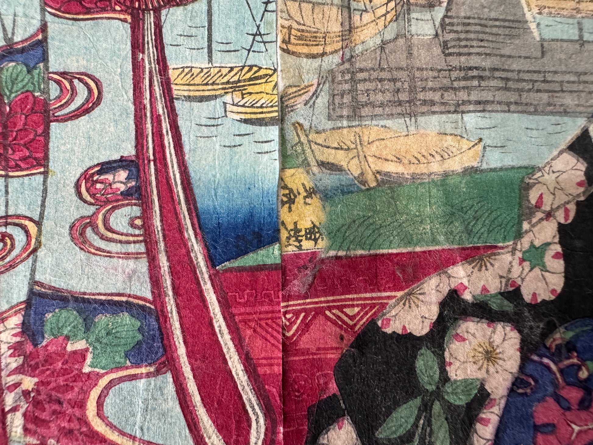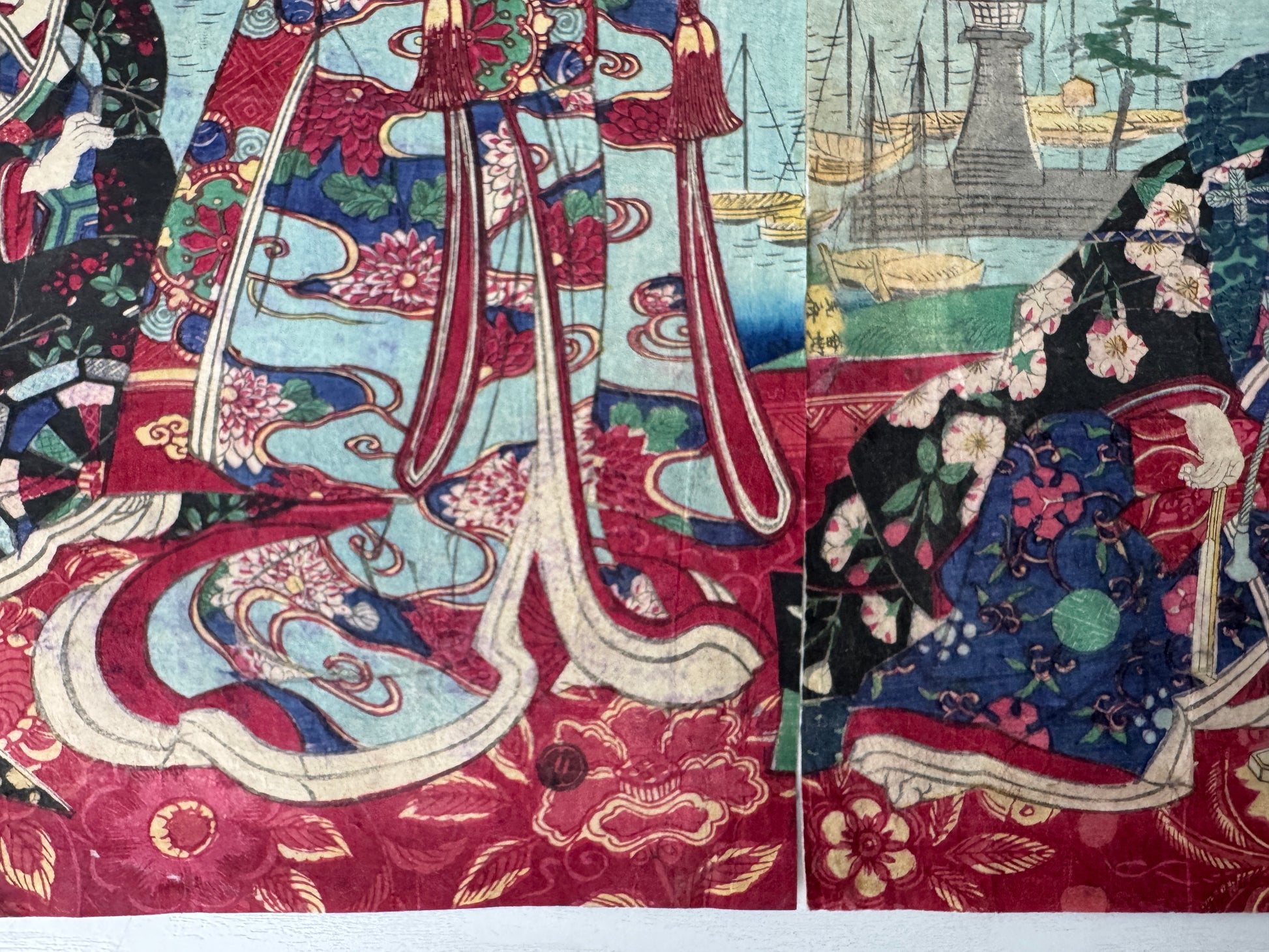 WOODBLOCK PRINT Yoshitora Beautiful woman triptych