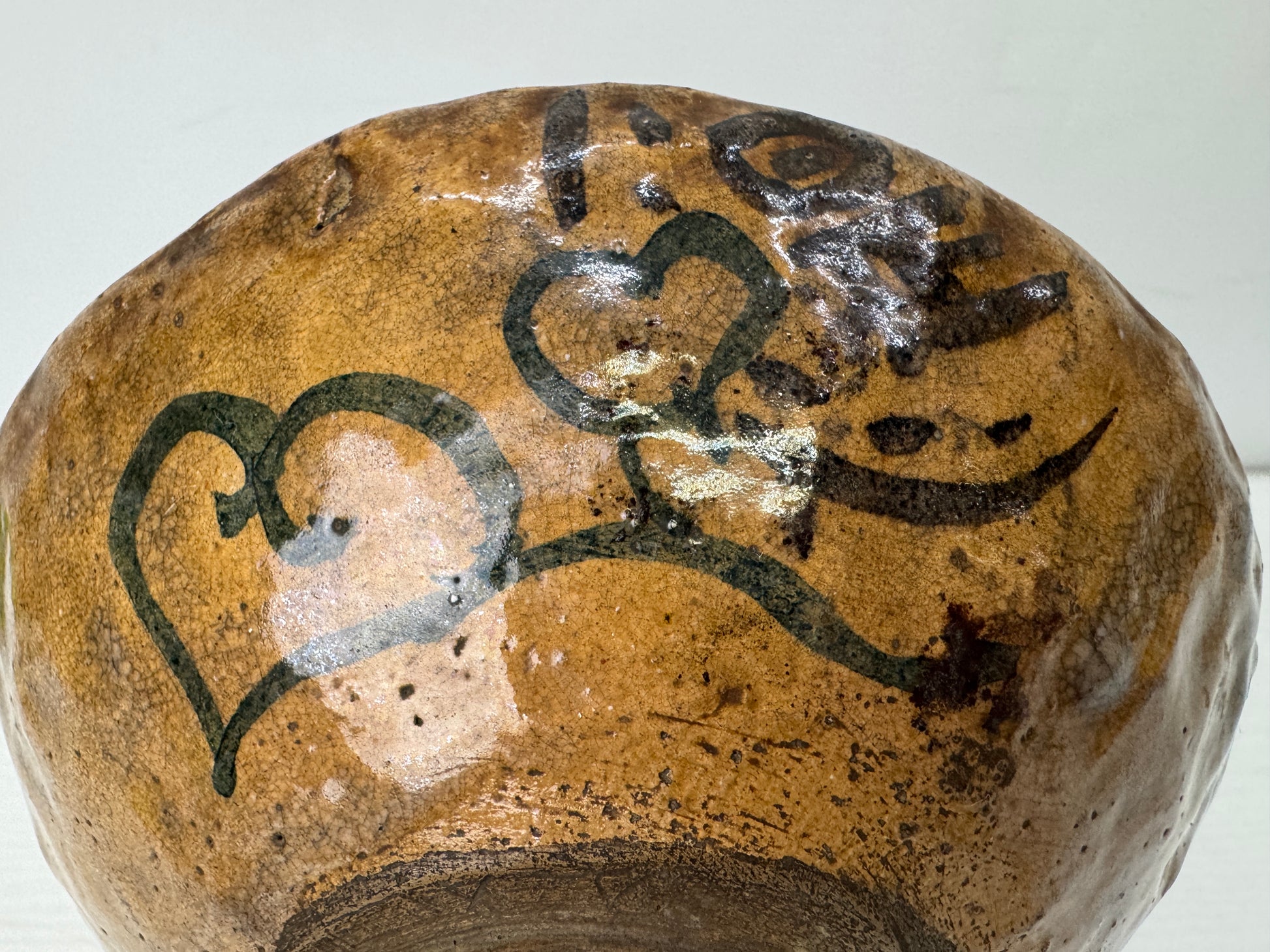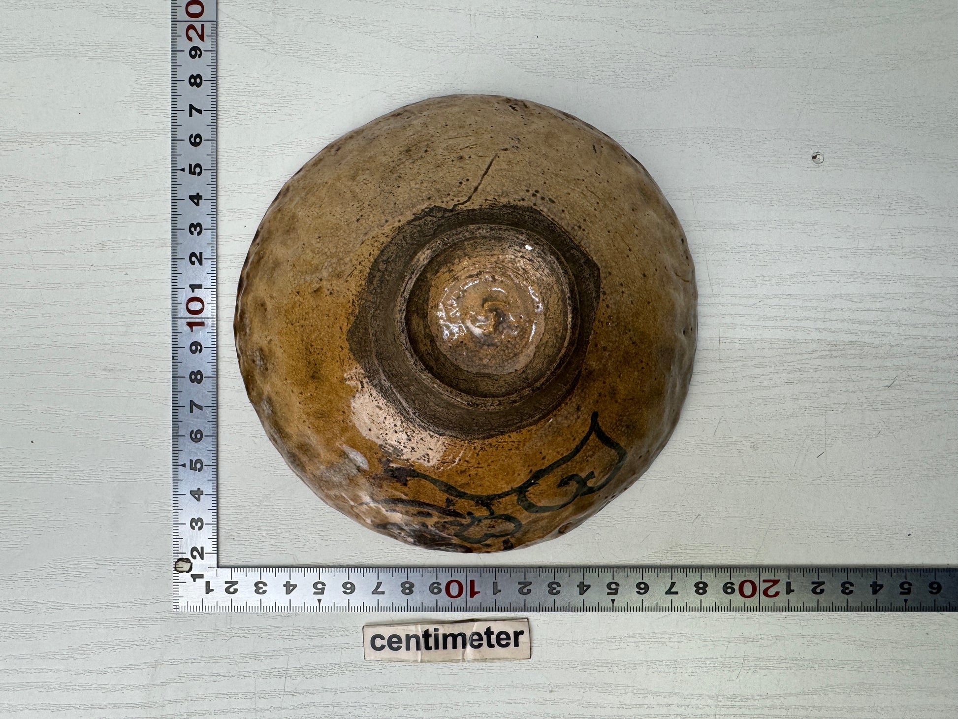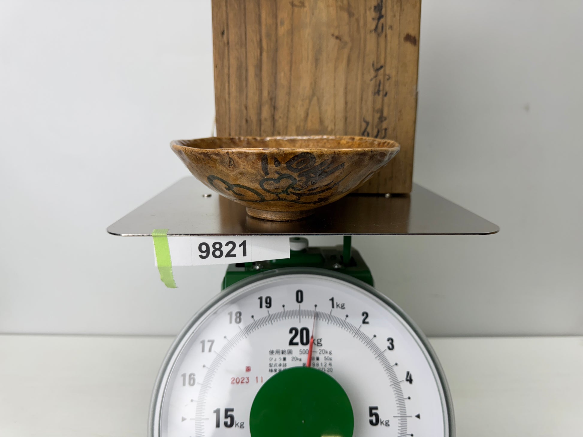 Y9821 CHAWAN Raku-ware flat bowl signed box Japan antique tea ceremony pottery