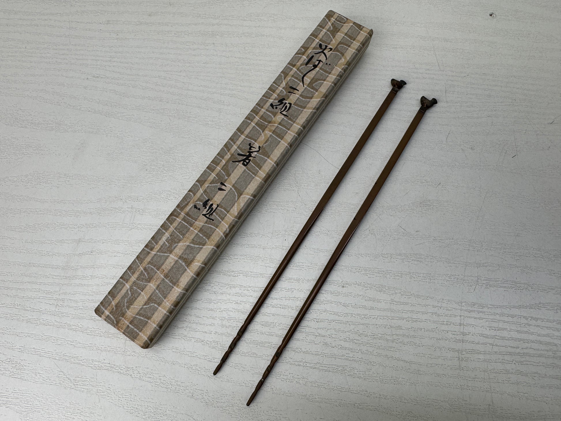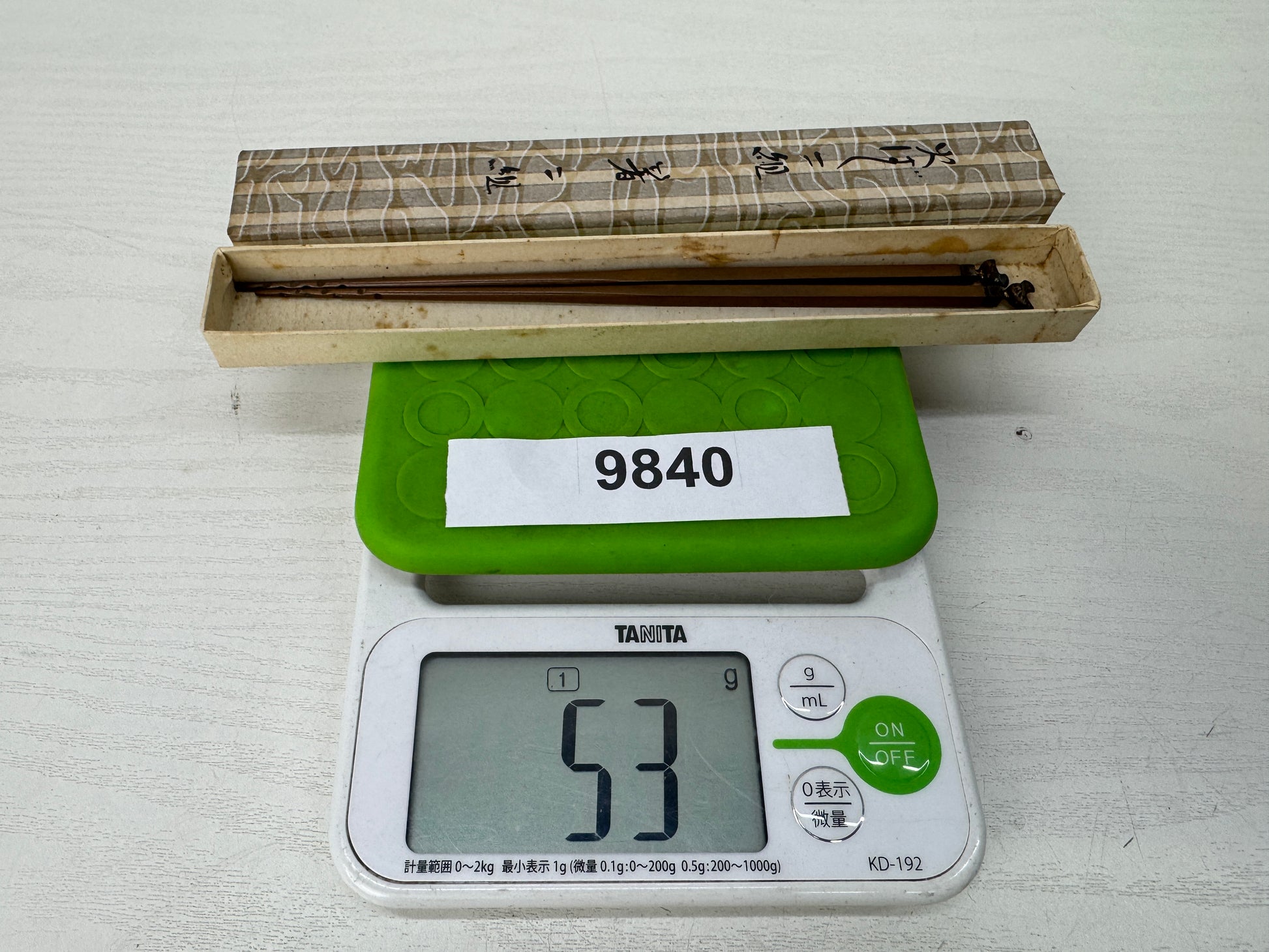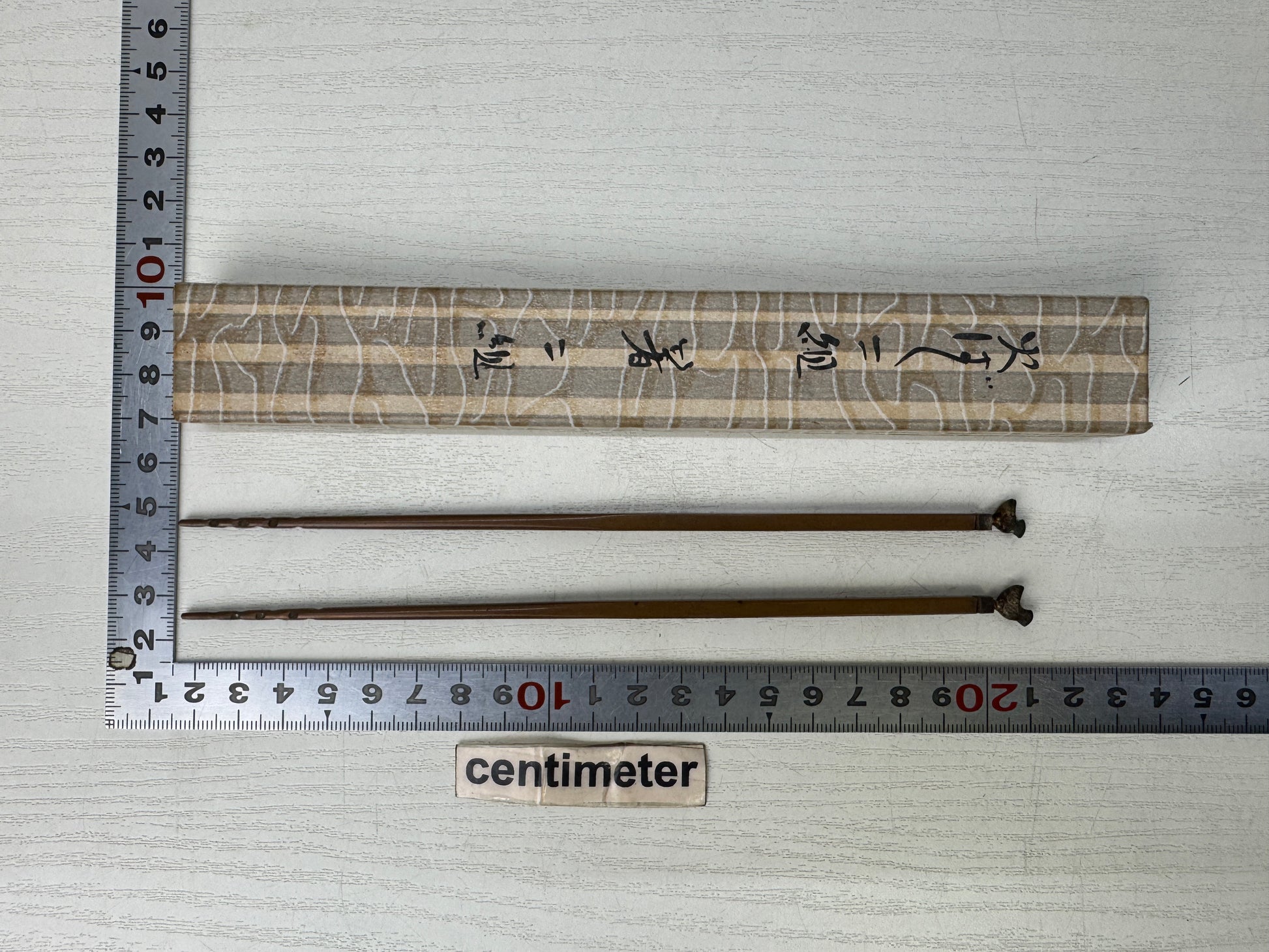 Y9840 HIBASHI copper Chopsticks tongs Plover ornament Japan Tea Ceremoy antique