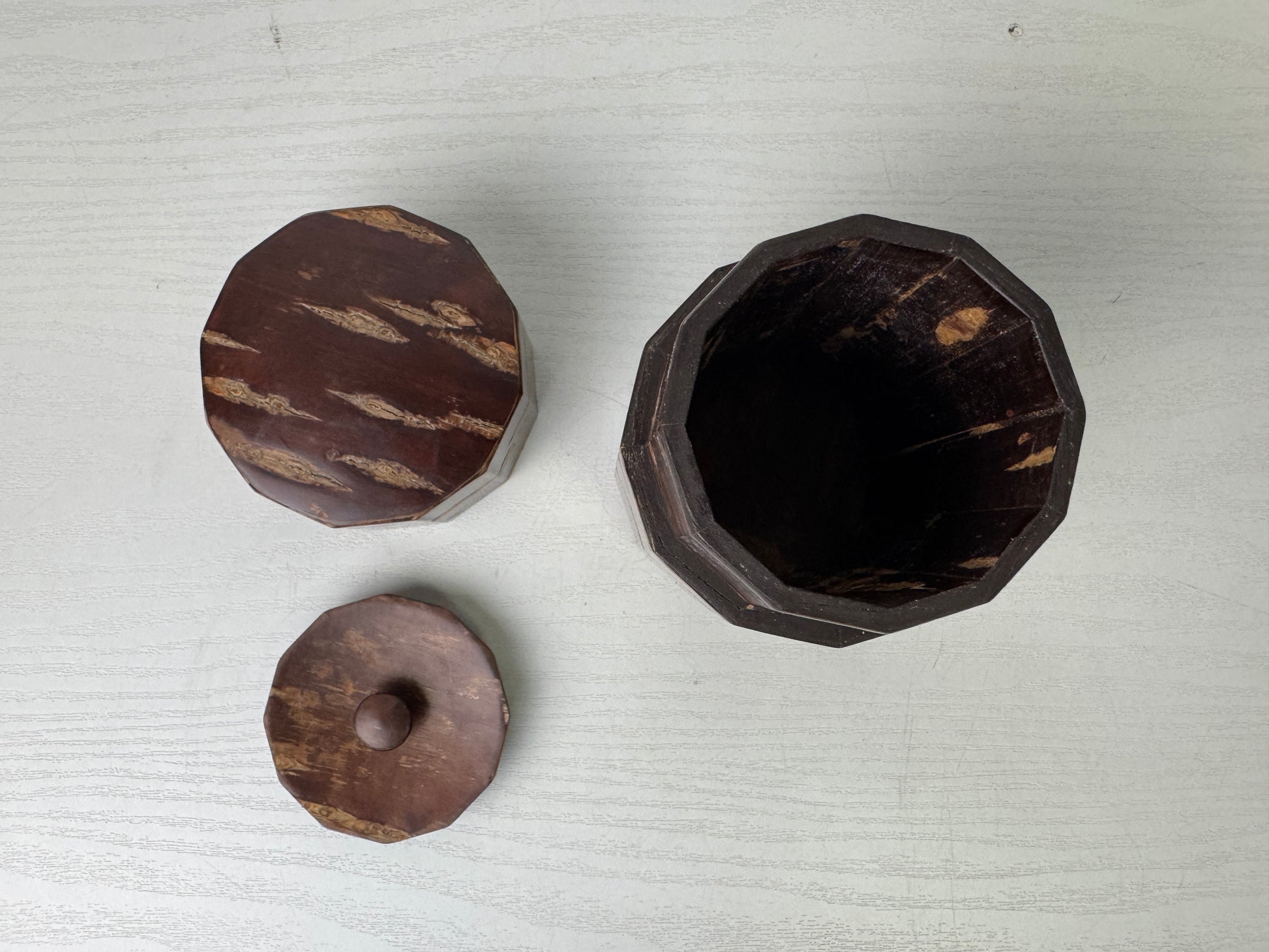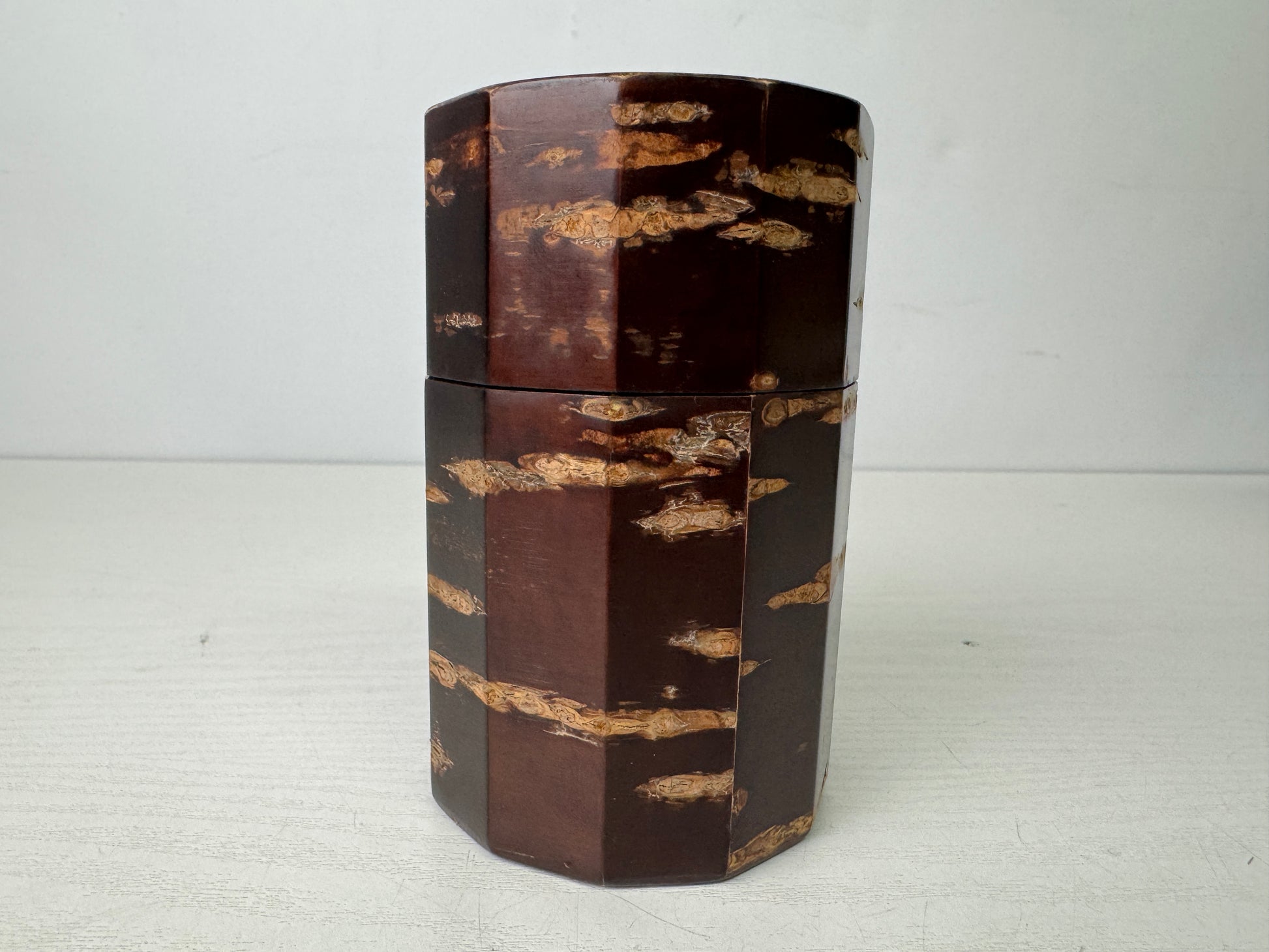 TEA CADDY Cherry bark Marquetry craft signed box matcha case