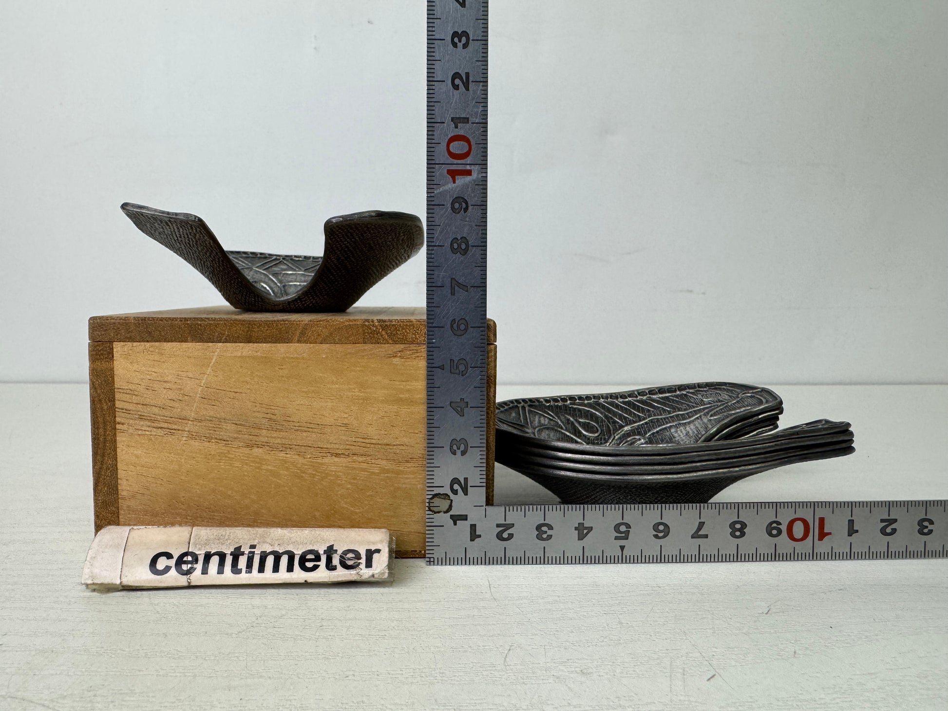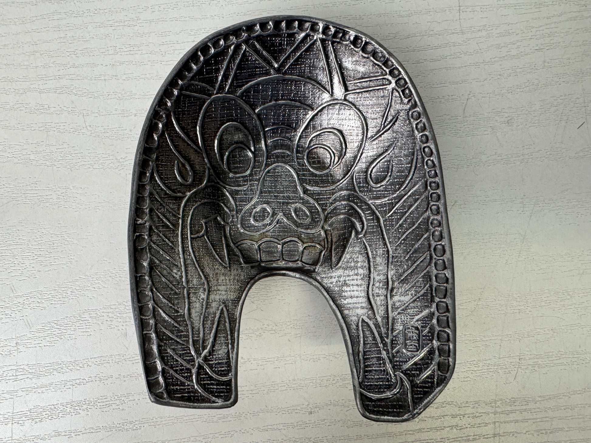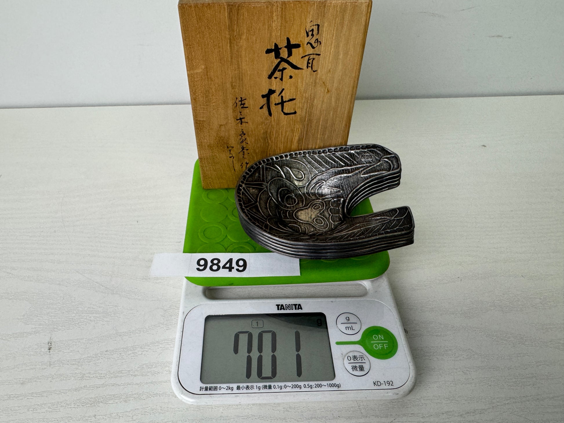 Y9849 DISH Tin Gargoyle Chataku Coaster signed box Japan antique Sencha tea