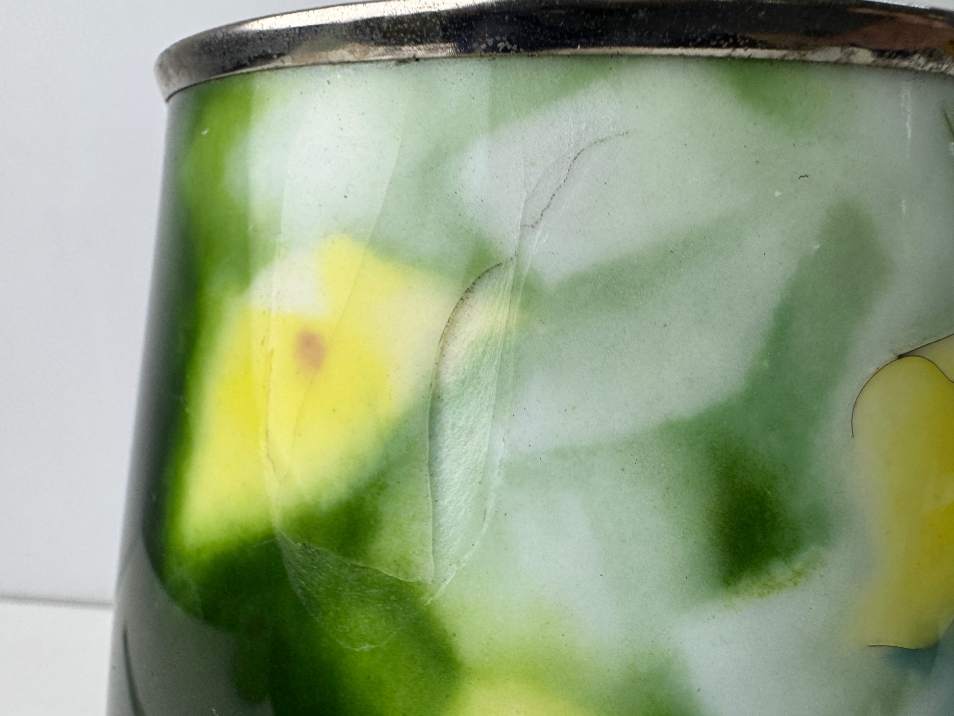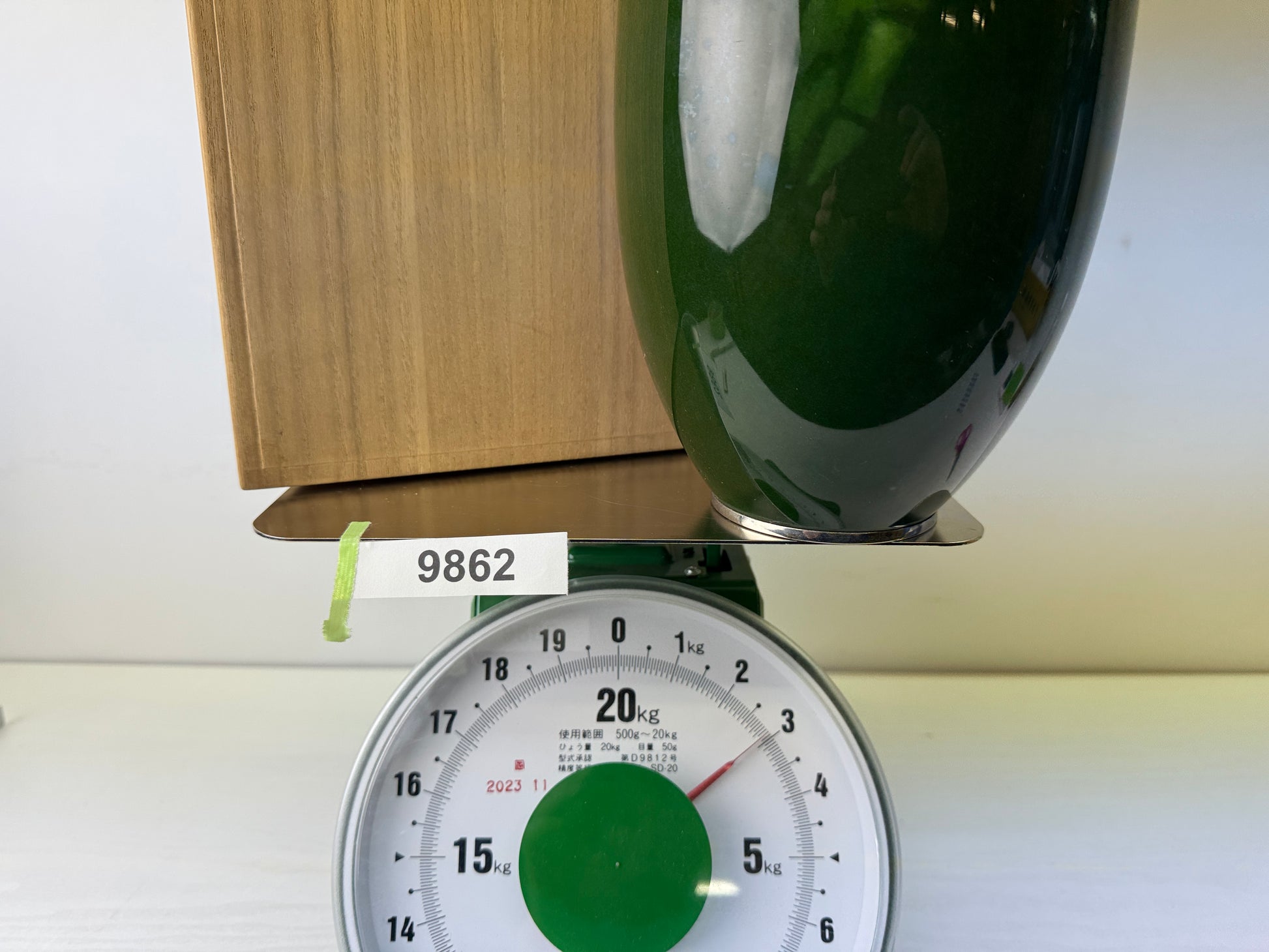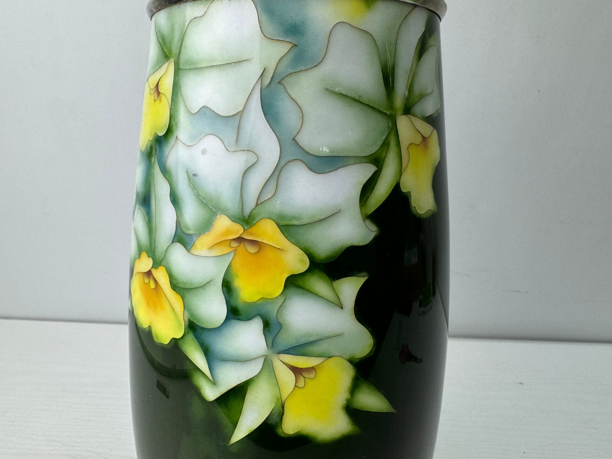 Y9862 FLOWER VASE Cloisonne green floral pattern signed box Japan antique decor