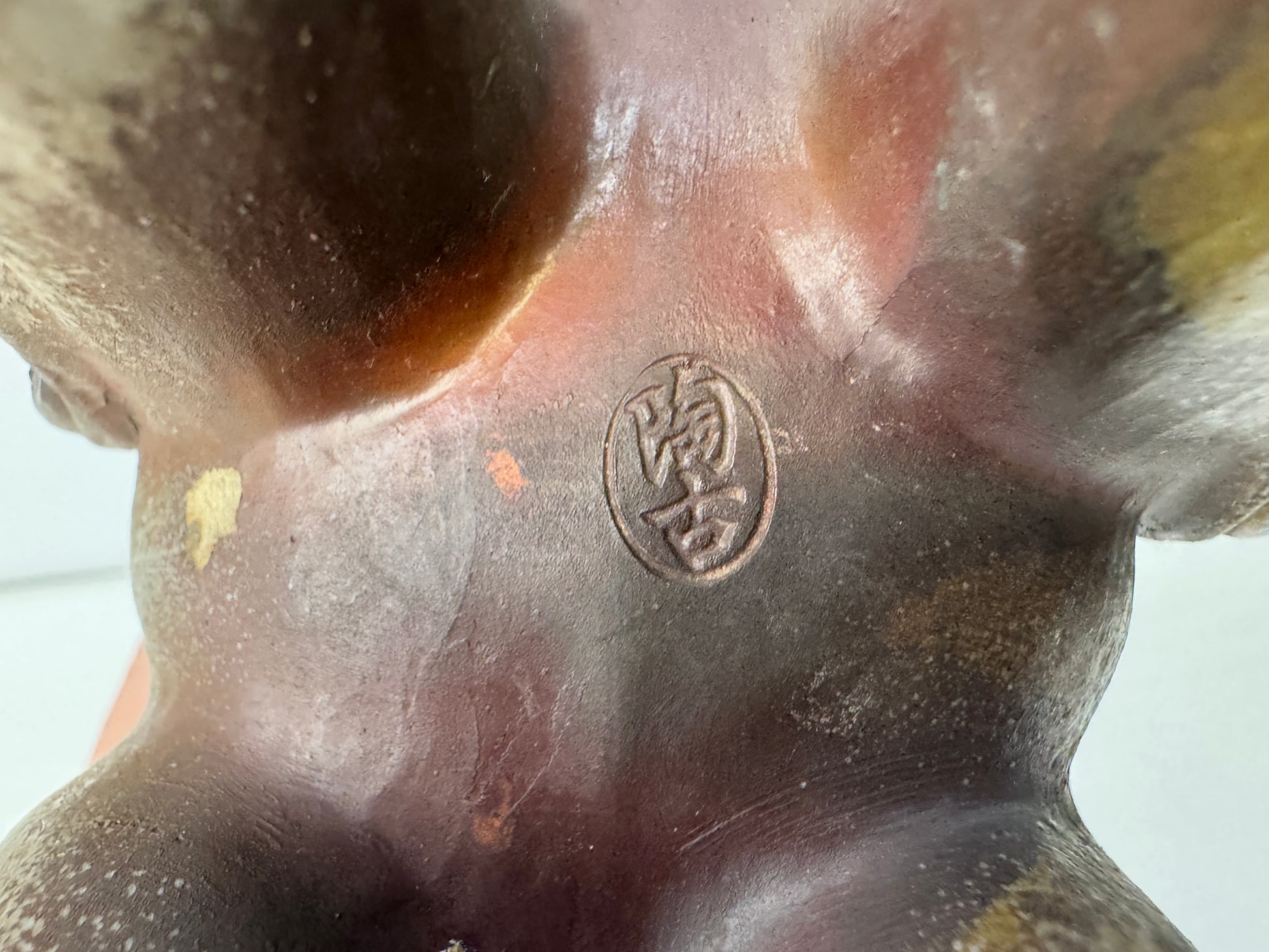 Y9873 OKIMONO Bizen-ware Lion figure figurine signed Japan antique interior