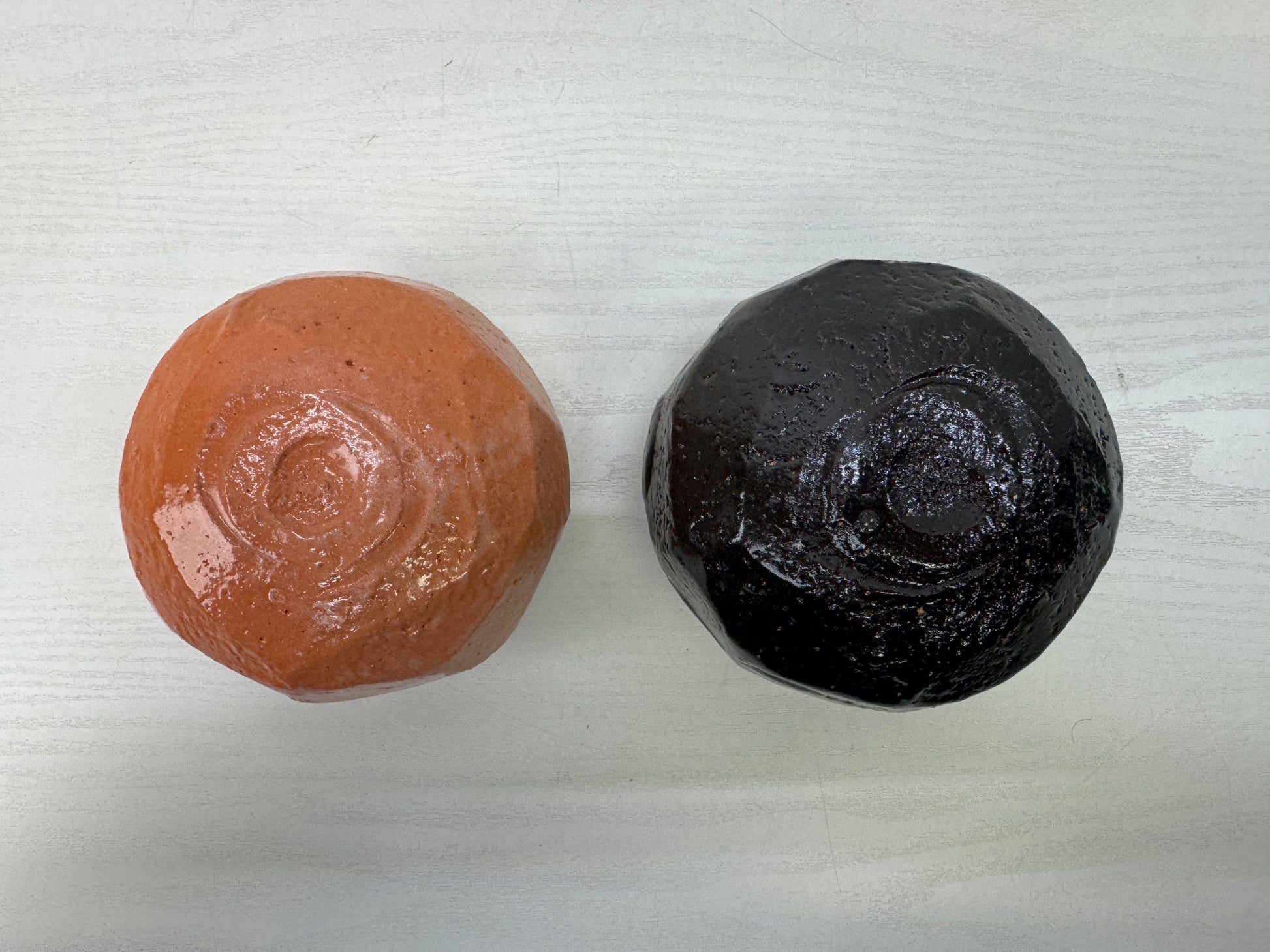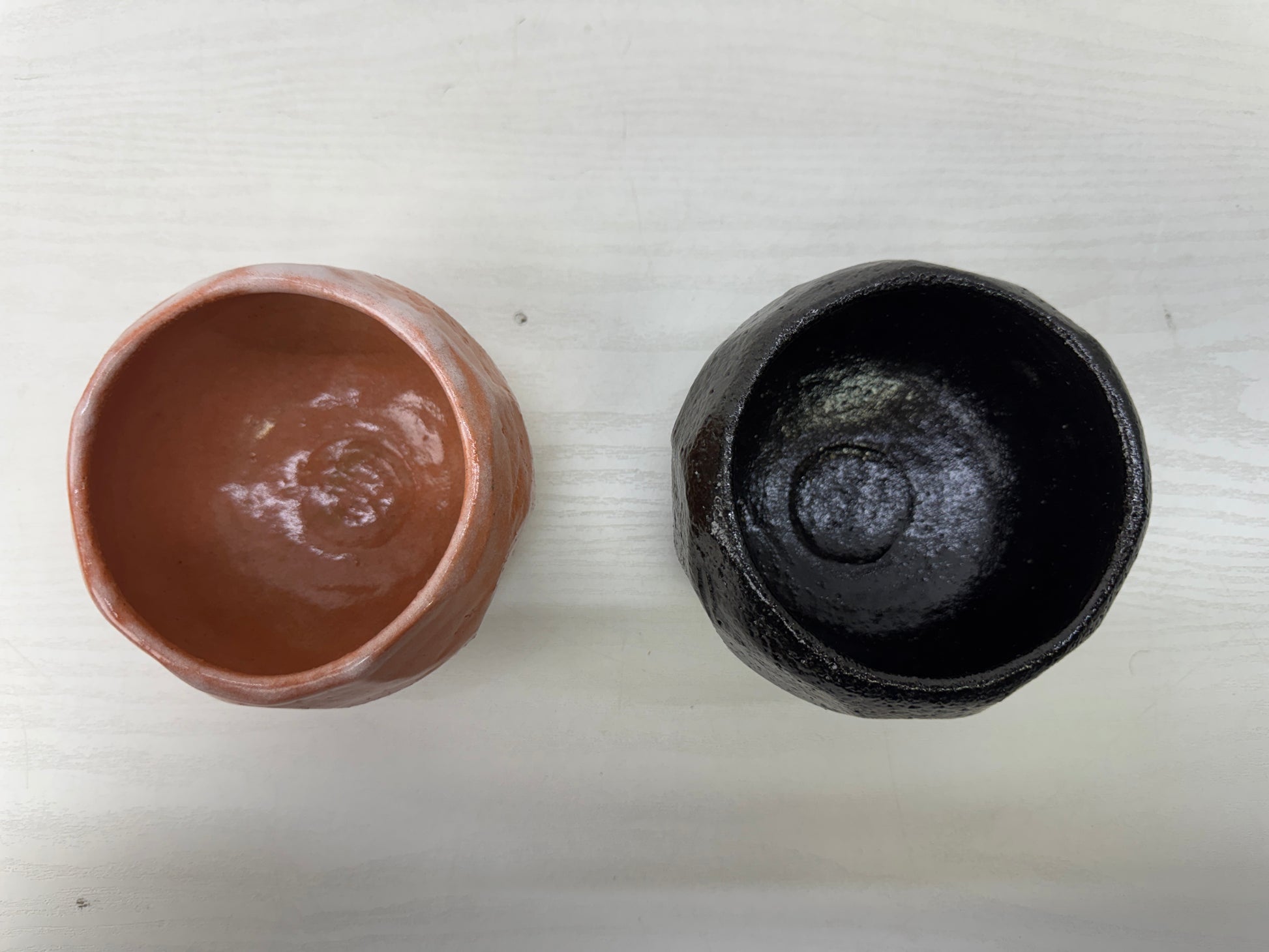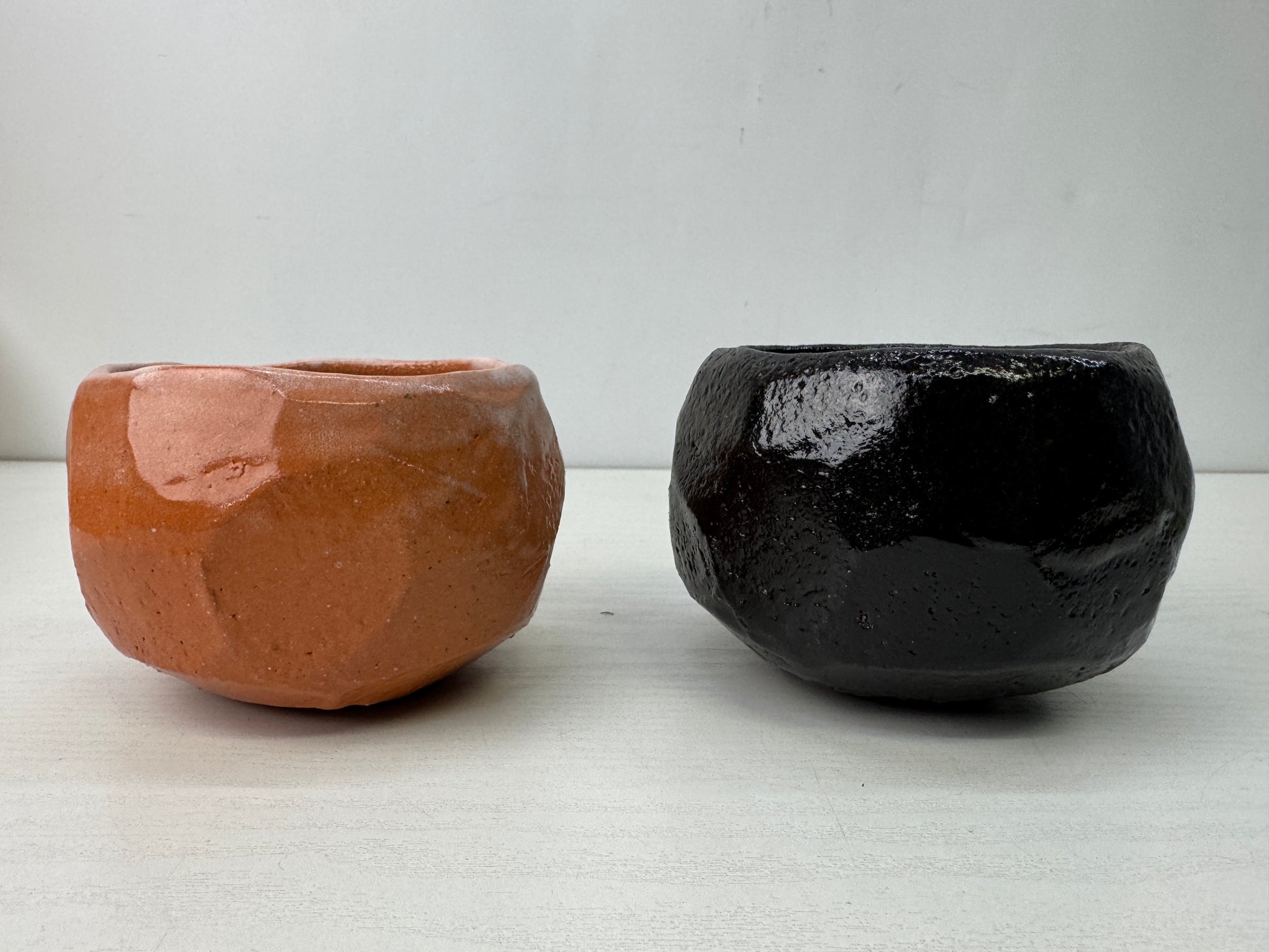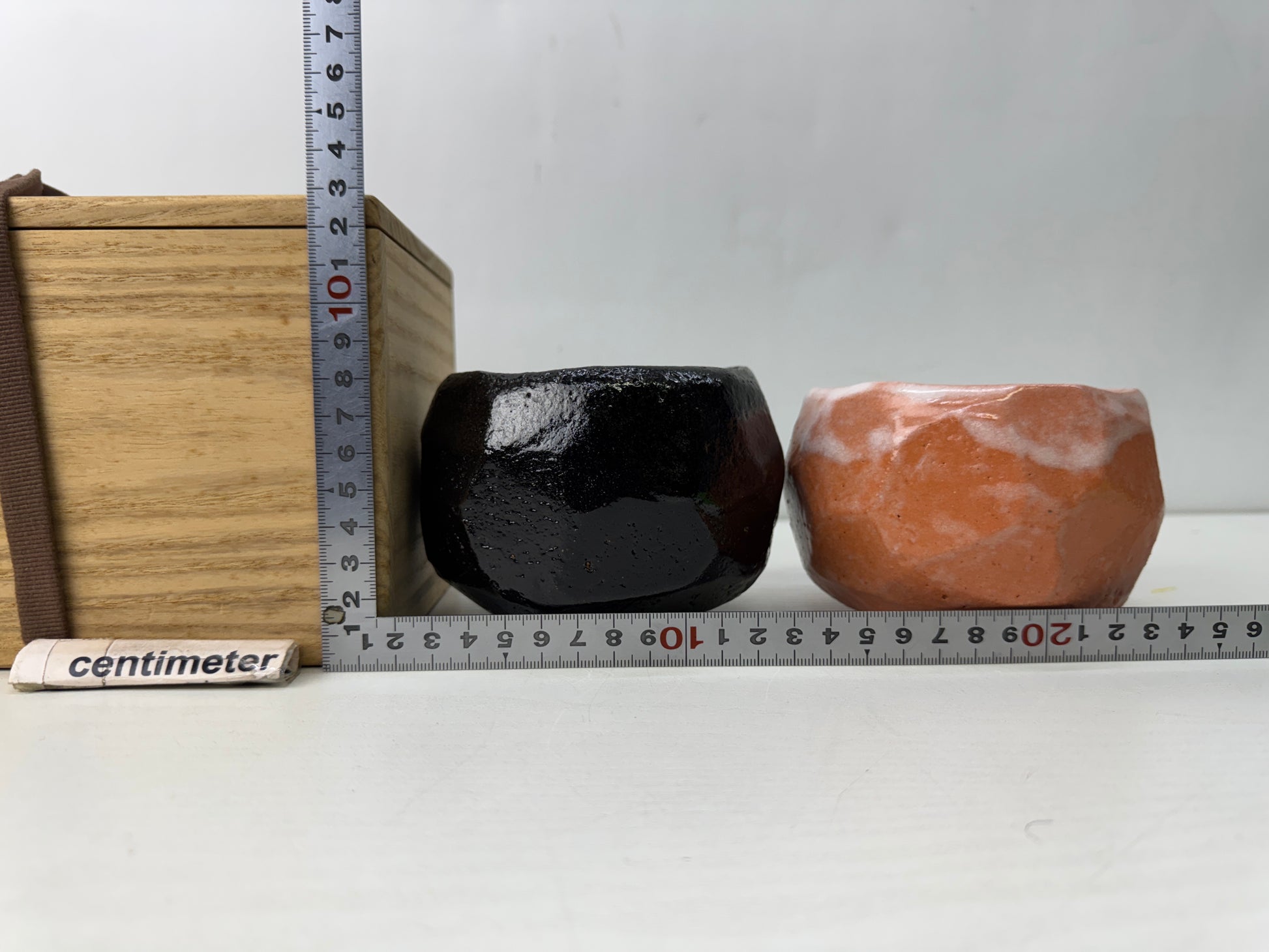 Y9902 CHAWAN Raku-ware bowl signed box beveled edges Japan antique tea ceremony