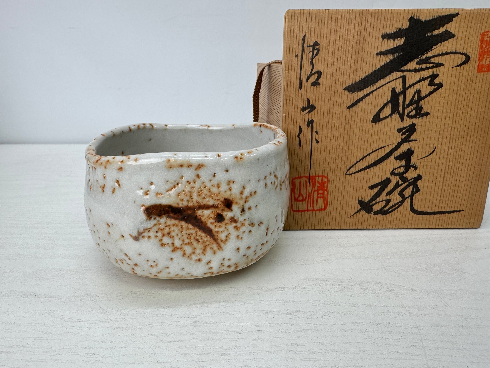 CHAWAN Shino-ware bowl signed box