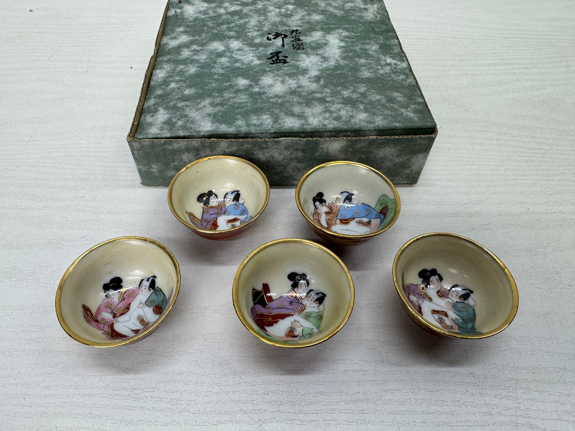 CHAWAN Kutani-ware Shunga sake cup set of 5 signed