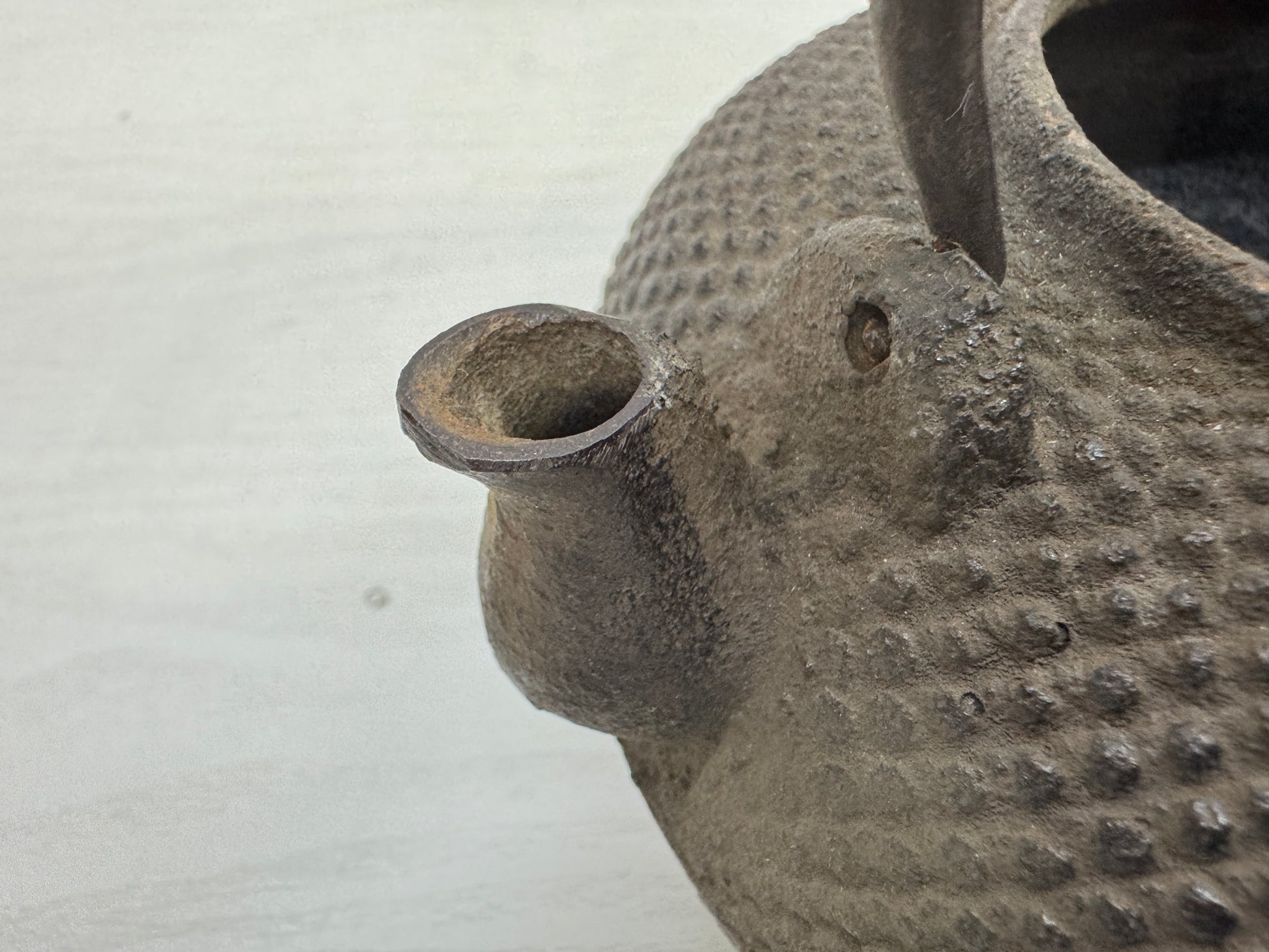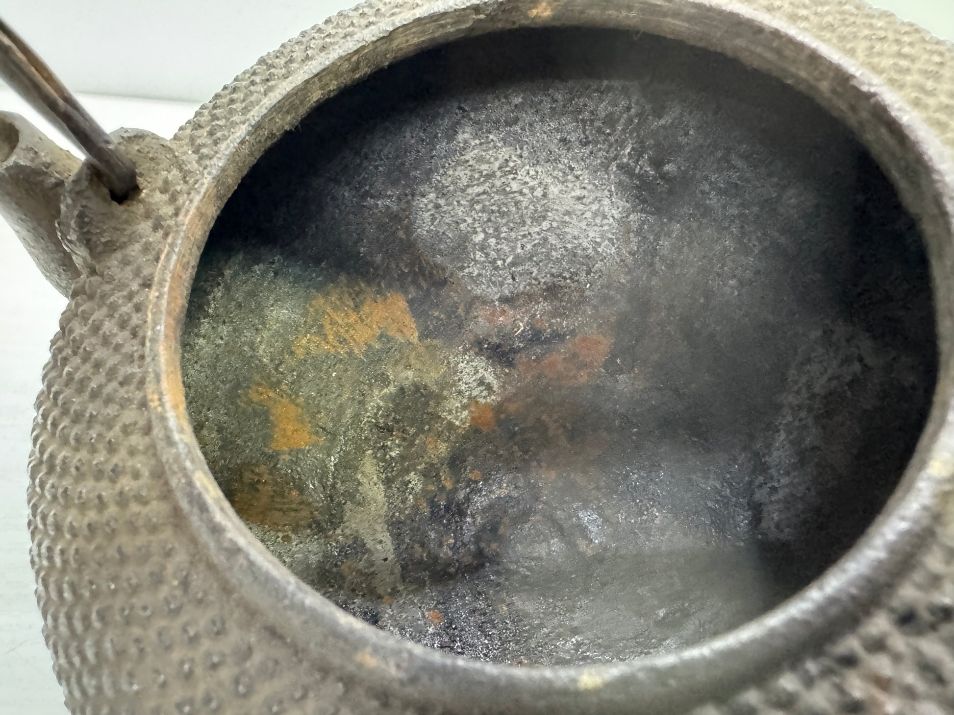 Y9939 TETSUBIN Iron kettle Arare pattern copper lid Japan antique teapot tea